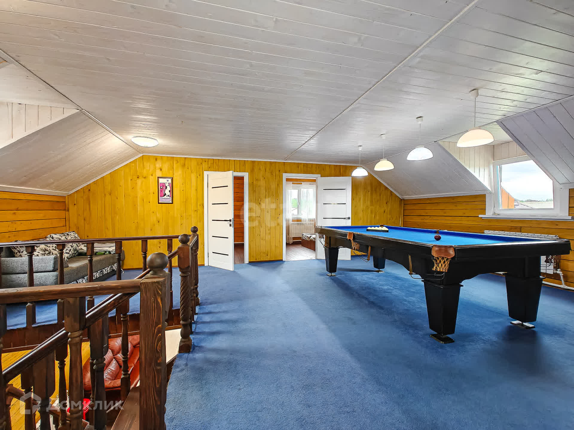 Второй этаж - бильярдная зона и 4 просторных спальни.