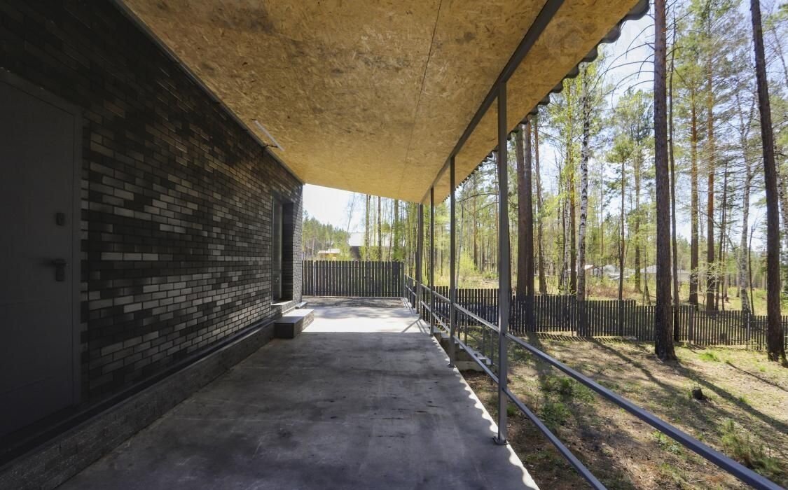 Материал - автоклавный газобетона 400 мм, D-500 «СИЛЕКС», облицован кирпичом (Rесkе Вriсkеrеi), на фасаде дома установлена подсветка. Электропроводка по ГОСТ. Фасады, вентилируемые с воздушной прослойкой 2 см, для наилучшей циркуляции воздуха. Между газобетоном и кирпичом-базальтовая сетка.