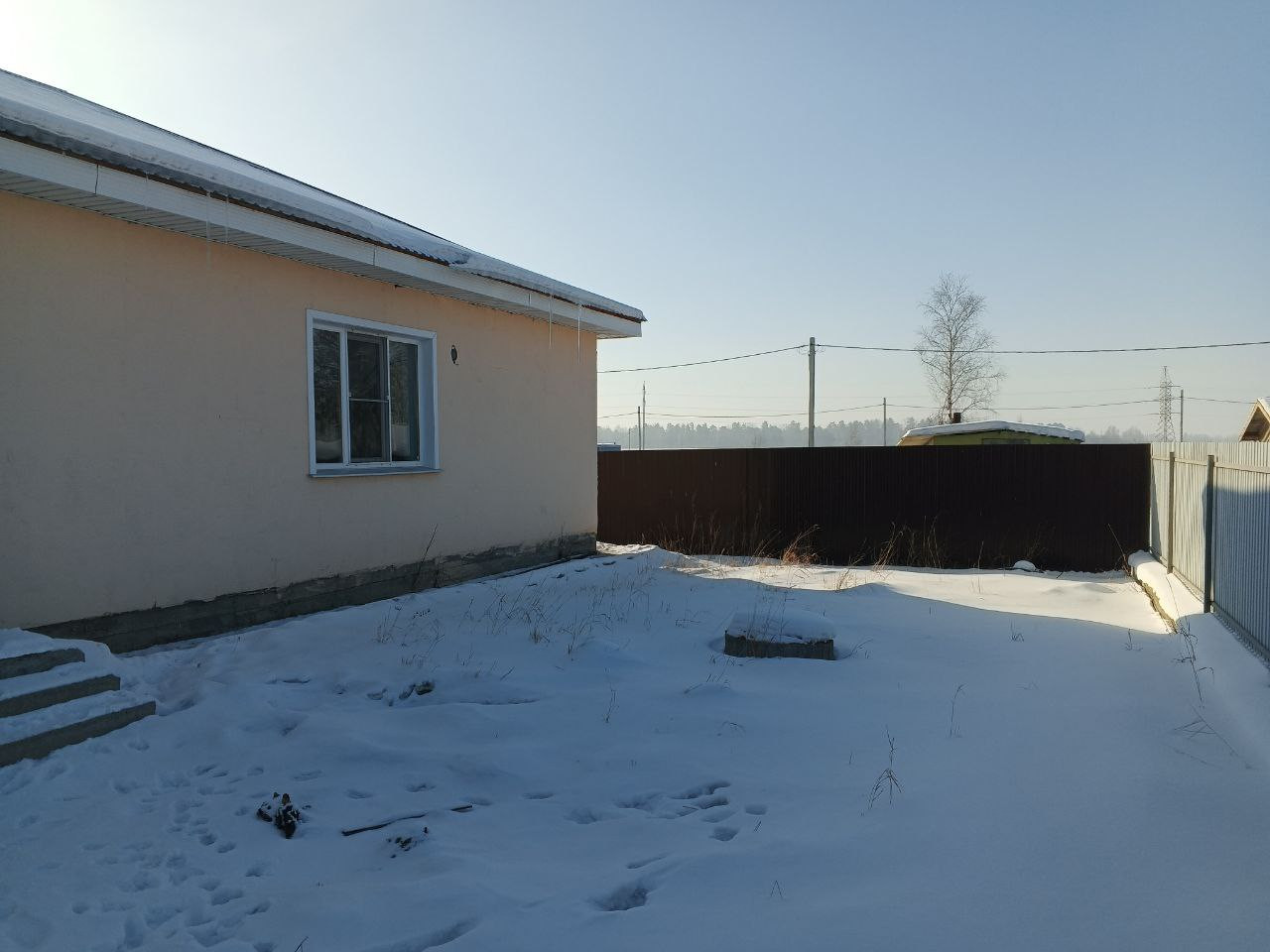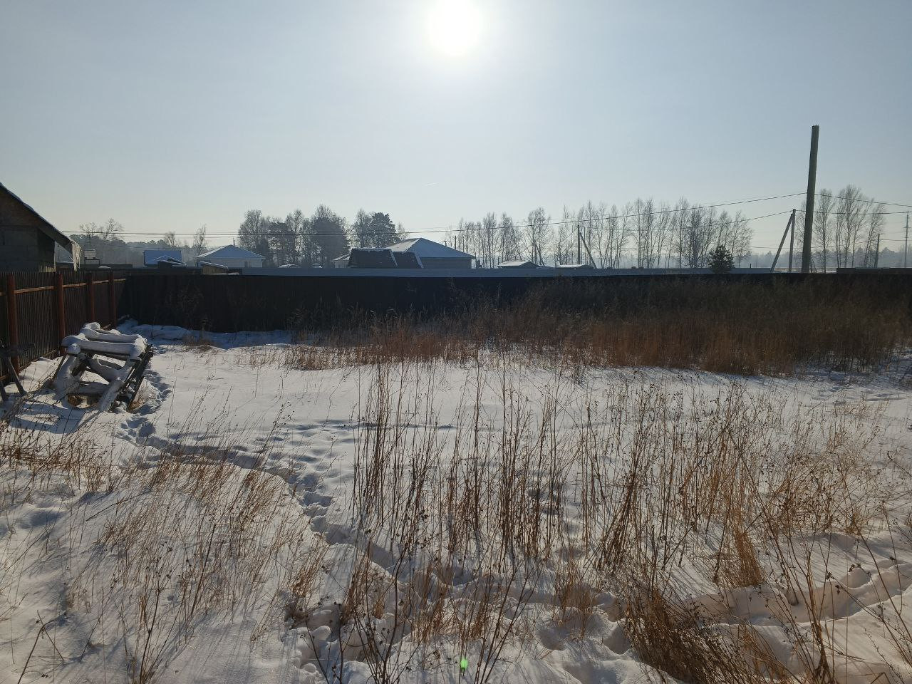 Участок огорожен забором из профлиста.