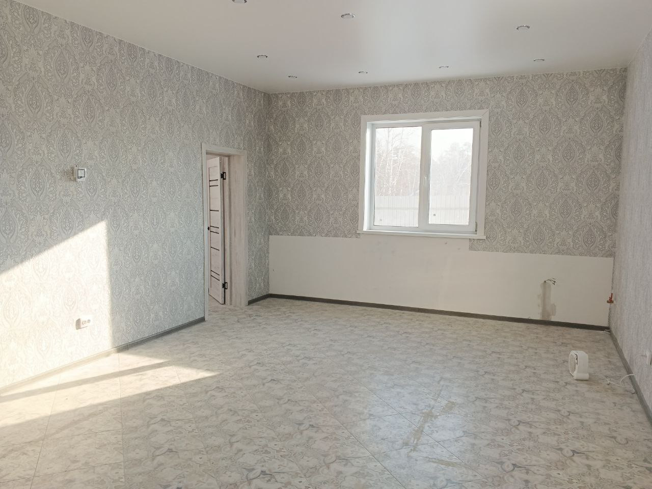 Отделка внутренняя (на полу плитка, теплые полы, нятяжные потолки, проводка медь, санузел в кафеле, ванна, унитаз, в камнатах обои)
