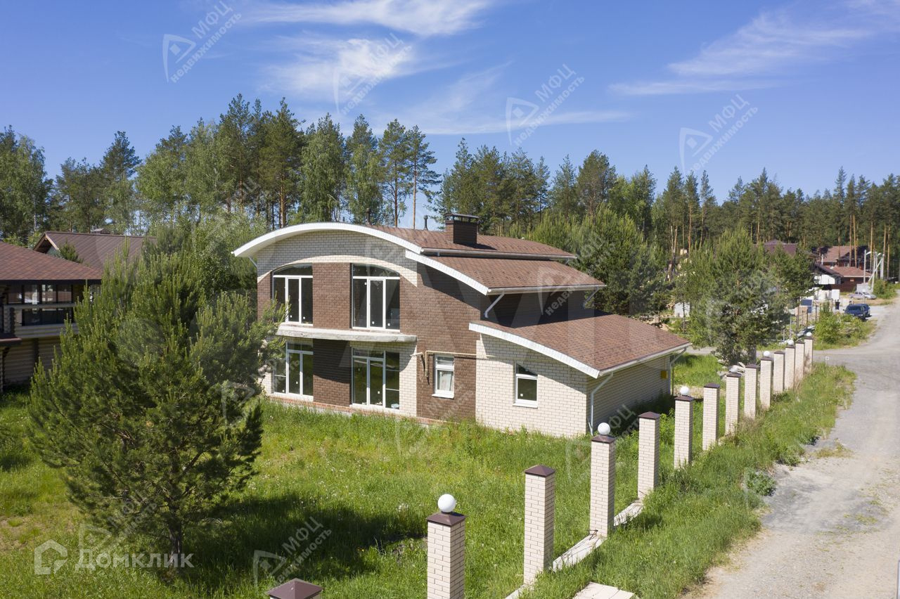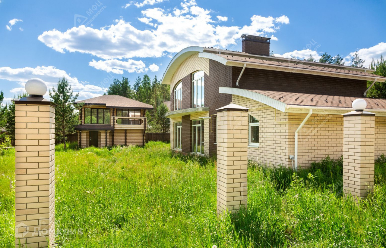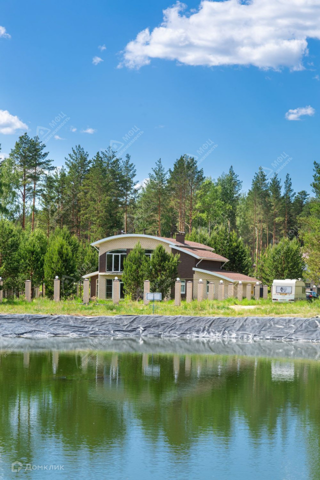 Эксклюзивное предложение - одно из лучших домовладений в дачном поселке "Клевер", на ул.Боровая, д.3, в 20 километрах от Екатеринбурга, на популярном челябинском направлении - не доезжая п.Кашино, в окружении шикарного соснового леса, на берегу водоёма! На участке растут молодые сосны, тишина и красивый вид из окон на водоем и поселок, сосед только с одной стороны. Хороший подъезд, отличные дороги, рядом магазин, в поселке: охрана, магазин, кафе, две детские площадки, зона воркаута, два водоема, сосновый лес, богатый грибами и ягодами, в окружении новые современные дома, соседи, проживающие постоянно.Домовладение состоит из просторного земельного участка квадратной формы 18,9 соток, кирпичного коттеджа 255 кв.м. с гаражом в черновой отделке, с современной планировкой, панорамными окнами, оригинальной скругленной крышей, а также стильного дома-бани 90 кв.м. из оцилиндрованного бревна в отделке "под ключ". Все коммуникации заведены, в доме-бане можно жить во время внутренней отделки дома.КОТТЕДЖ 255 к.м.: - Свайно-ленточный фундамент- Кирпичные стены с монолитным высокопрочным пенобетоном, красиво облицованный кирпичом- Перекрытия - монолитные железобетонные - Кровля утепленная минеральной ватой, покрытая гибкой черепицей- Окна - крупноформатный двухкамерный ПВХ-профиль Veka- Четыре балкона- дымоход под камин в гостиной- столовая расположена в остекленном эркере с видом на поляну с соснами- высокие потолки - 2,85 м., -скважина глубиной более 60 м. с отличной водой- есть материал на теплые полы- отделка черновая- макс. разрешенная мощность по электричеству - 22 кВт- гараж с воротами на электрическом приводе.ДОМ-БАНЯ 90 кв.м.:- 2 этажа со всеми коммуникациями с отделкой "под ключ"- материал стен - оцилиндрованное и окрашенное бревно- крыша - мягкая черепица- санузел- печь чугунной ковки Везувий на 30 кВт- водонагреватель Аристон на 70 л.- мебель в комнате отдыха и спальной- панорамное остекление, теплые полыНа участке установлена капитальная часть забора из кирпича, сделаны фонари, подведено электричество. Газовое отопление и поселковые тарифы на коммуникации делает домовладение весьма экономичным в содержании. Из несомненных плюсов - небольшие общепоселковые взносы: всего 1600 руб. в месяц. Мебель в доме-бане остается в подарок покупателю!Дома строились с большой любовью хозяев, для себя, продаются в связи с переездом в другой город. Имеется эскизный проект. Один собственник, все документы готовы. Весьма достойное домовладение по цене ниже сегодняшней стоимости строительства таких домов - стильное и качественно построенное, находящееся в тихом живописном месте, в 20 минутах езды от Екатеринбурга. Доступная и правильная инвестиция в загородную жизнь! Спешите на просмотр - домовладение может стать Вашим! Для оперативной связи лучше позвонить на телефон указанный в объявлении, письменные сообщения не доходят до специалиста!