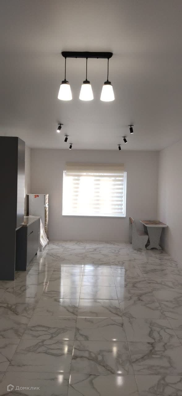 На стенах обои под покраску, натяжной потолок, светильники, межкомнатные двери, с/у в плитке.