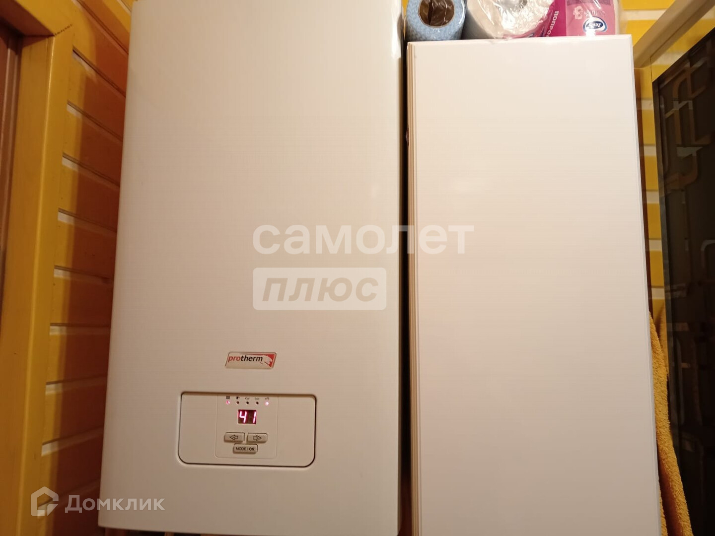 Система отопления: Одноконтурная. Обеспечивается при помощи настенного электрокотла Protherm Скат 9 мощностью 9 кВт. Система отопления заполнена теплоносителем «Теплый дом» (не замерзайка). Регулировку температуры можно осуществлять двумя способами:- ручная. Выставление температуры теплоносителя в котле (автоматическое поддержание температуры теплоносителя в системе отопления в соответствии с выставленной пользователем величины на самом котле);- автоматическая, через WI-FI. или GSM (через сим карту). Пользователь устанавливает приложение в свой смартфон и управление (выставление определенной температурой) осуществляется через приложение, удаленно. В этом варианте работа котла зависит не от температуры теплоносителя, а от температуры окружающего воздуха в помещении, определяемого с помощью датчика, установленного на первом этаже дома.