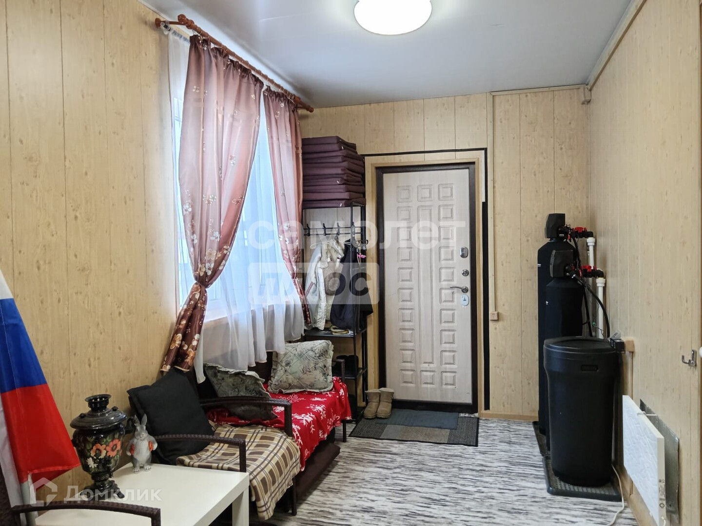 Планировка:1-й этаж: утепленная круглогодичная веранда, размерами 6 х 2,7 м., с большим количеством мест для хранения. На ней размещается система водоочистки воды марки WWSA-0844 DMCan89. Монтаж системы производился в апреле 2023 года специалистами поставщика данного оборудования в Российскую Федерацию. Гарантия на оборудование и выполненные работы по монтажу до апреля 2025 года.Кухня-гостиная, сан-узел с душевой кабиной.