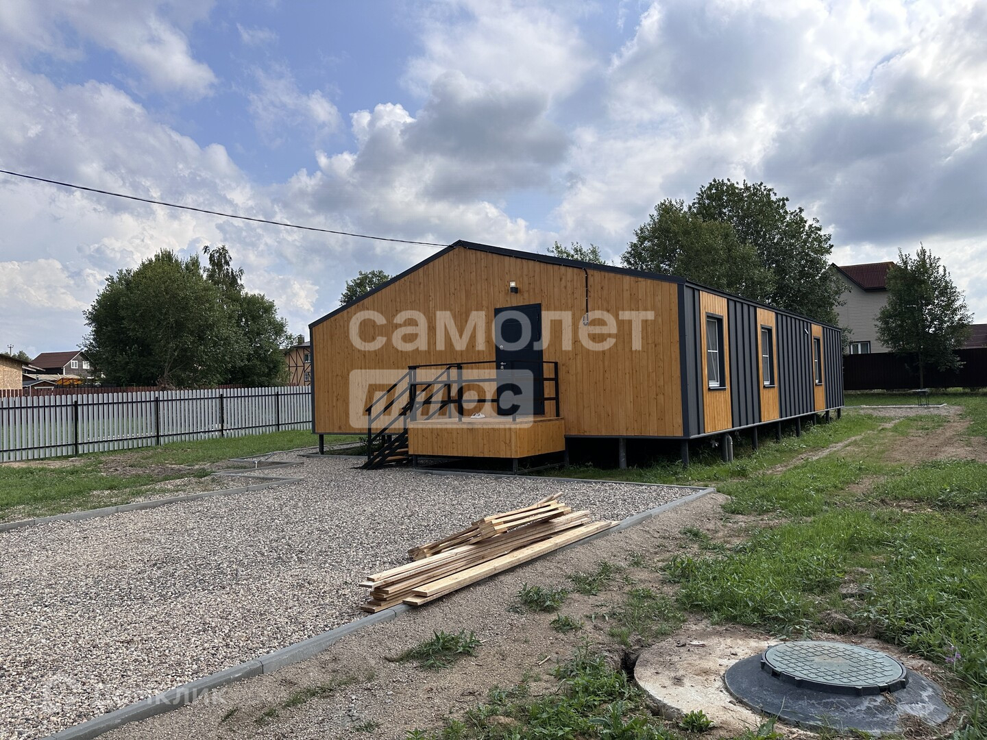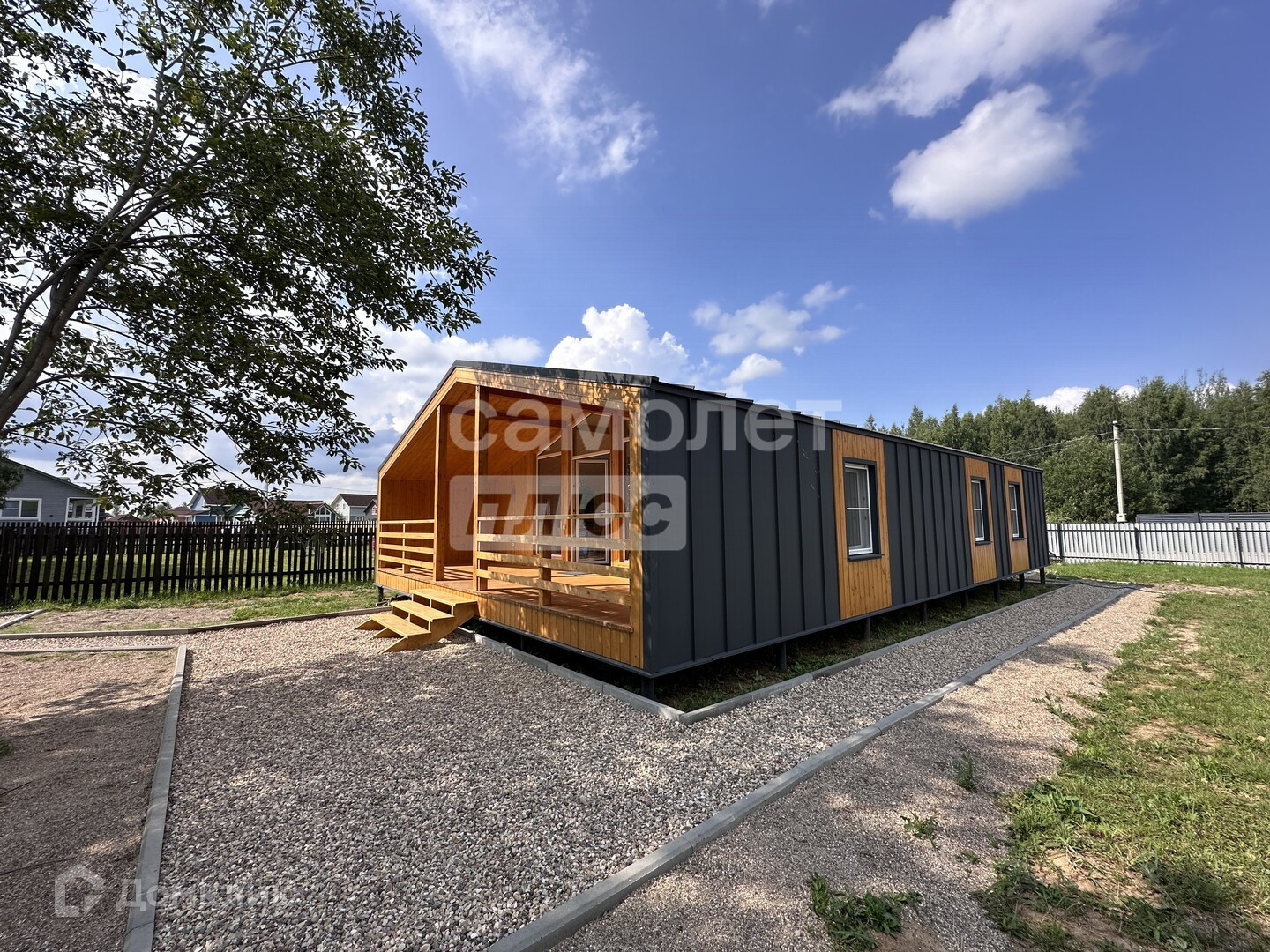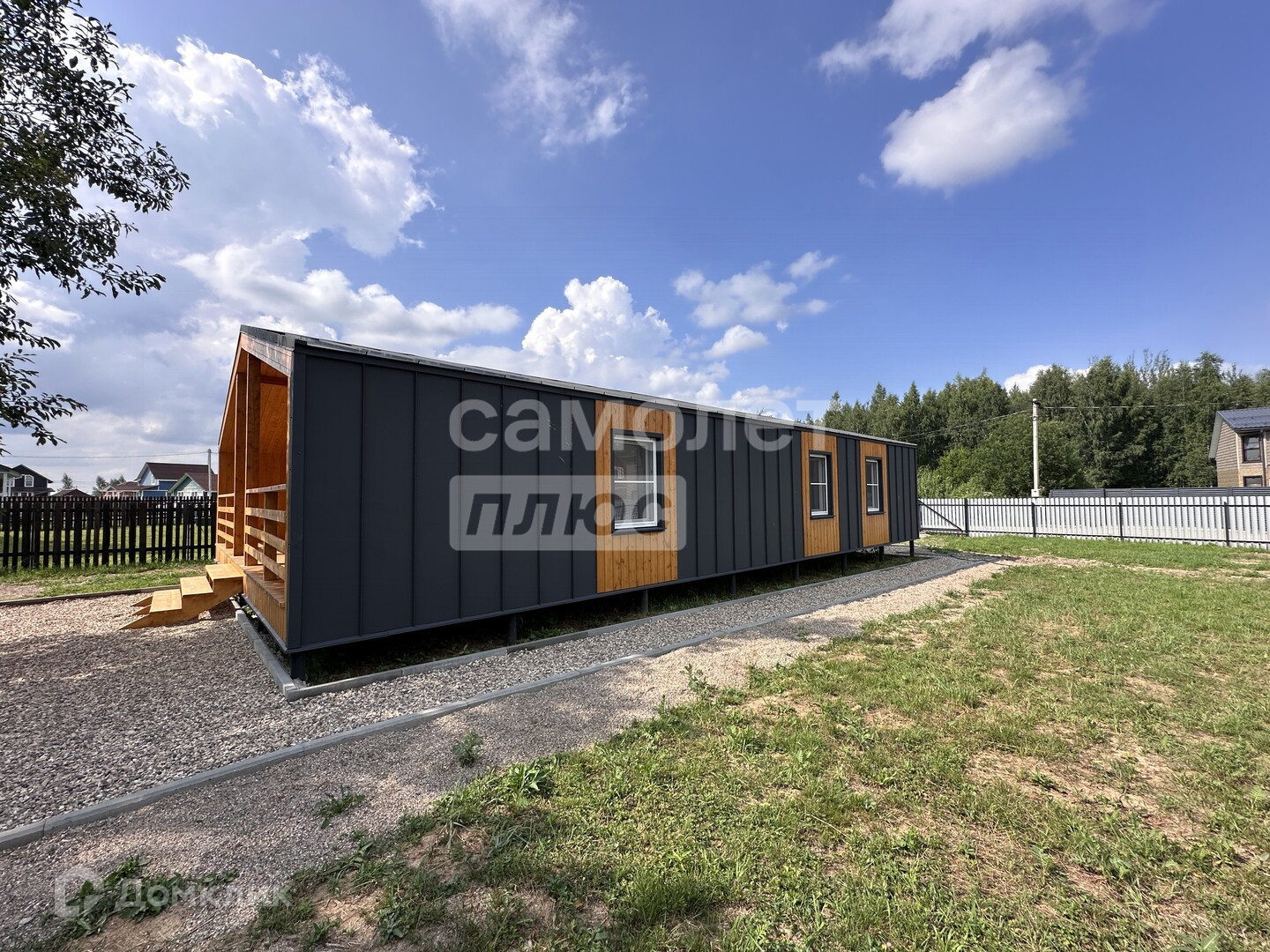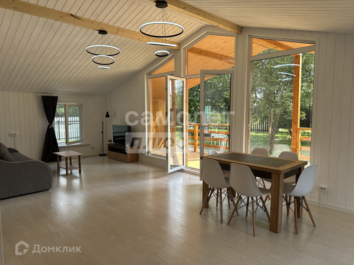 Расстояние до Москвы составляет 120 километров по Ярославскому шоссе. Общая площадь дома — 119 квадратных метров. В доме три спальни и просторная кухня-гостиная. Участок, на котором расположен дом, имеет площадь 10 соток. Он огорожен, имеется калитка и откатные ворота.