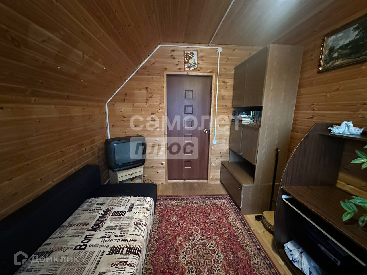 Планировка: 1 этаж: просторная пpиxожая, финская сауна , санузел с душевой кабиной, стиральной машиной и водонагревателем объемом 100 литров, спальная комната с двуспальной кроватью, кухня-гостиная с выходом на веранду, вся мебель и техника остается(посудомоечная машина, холодильник, 2 плиты (на кухне газовая, на веранде электрическая), телевизоры, диваны, свет с регулировкой с пульта. Под лестницей есть кладовое помещение