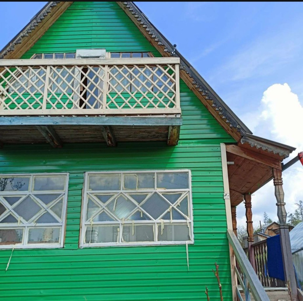 Цена до конца недели. Продается дача Лесники-1. Земля и дом в собственности. Подходит Ипотека и материнский капитал. Долгов нет. Дом - на фундаменте, брус 100 на 150. Дом два этажа, обшит профлистом, утеплен, под домом ледник. В дом заведена вода с летнего водопровода. Размер дома 6 на 6 с верандой и террасой. Первый этаж жилой даже зимой, второй этаж мансардный. В доме установлена кирпичная печь. Баня небольшая с печью из нержавейки, вода с летнего водопровода заведена в баню. Птичник рядом с баней.  По всему участку летней водопровод. Плодородная земля, теплица 12 метров покрыта поликарбонатом на бетонных столбах, металлический каркас из уголка. В теплице две печи, возможность обогрева от инфракрасного обогревателя. Летняя кухня. Участок 7,7 соток, удобрен всем чем можно, с возможностью расширения и обустройства зоны отдыха в сосновом бору. В шаговой доступности родник с ключевой водой и пирс для лодки,  при этом нет холода от воды. Дача с момента получения участка в с 1980г в одних руках. Насаждения: Ирга, малина, вишня, пионы, курильский чай, боярышник, рябина, клубника, жимолость и т.д... Для просмотра звонить заранее. Небольшой обоснованный торг.