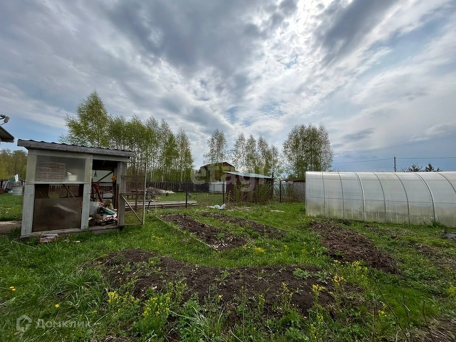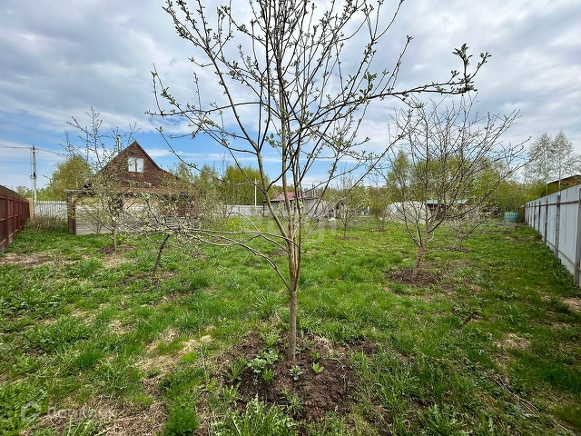 Земельный участок 10 соток в ДНТ Лесное озеро, на участке 1) баня 2-х эт.; 2) небольшой домик 1 эт с верандой и чугунной печью-камином; 3) хозблок-дровник, 4) теплица; 5) около 15 плодовых деревьев; 6) скважина с кессоном, водопровод в домик и баню; 7) ворота, забор, бетон-парковка.