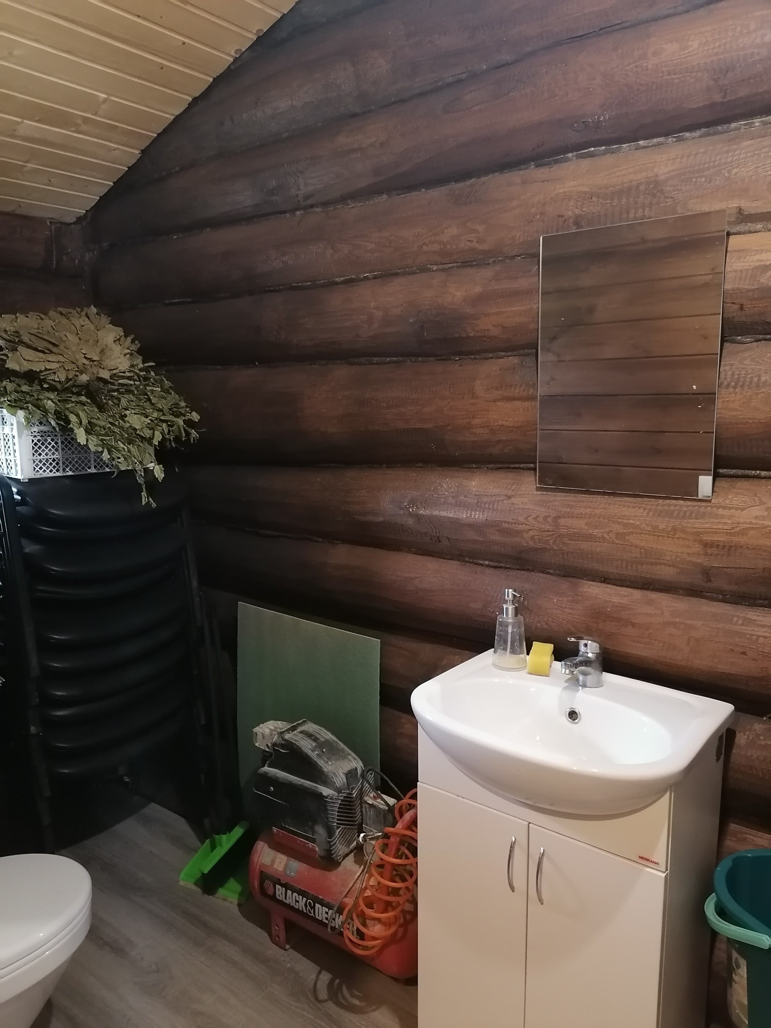 Продаётся дом-баня на участке 10 соток в охраеяемом днт Лисенки. Дом-баня из бревна, полностью готов к проживанию и использованию, есть необходимая мебель. Вода-скважина, отопление - камин и электроконвектор, канализация-септик, электричество 15 кВт. Участок огорожен, есть плодовые дерьвья, теплица.