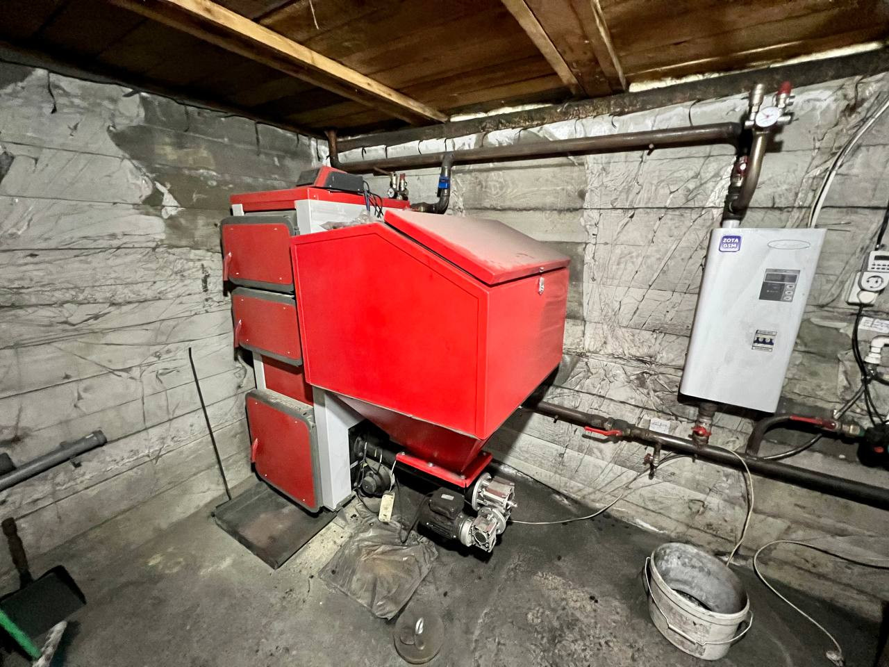 В доме 2 этажа + цокольный этаж. На 1 этаже кухня-гостиная, гостевая комната, гардеробная и сан узел. На 2 этаже три комнаты, гардероб, сан. узел с душевой кабиной. Цокольный этаж с комнатой для твердотопливного котла «Хайстехник» производство Польша, также имеется электрокотел « Зота», в систему залита незамерзайка.