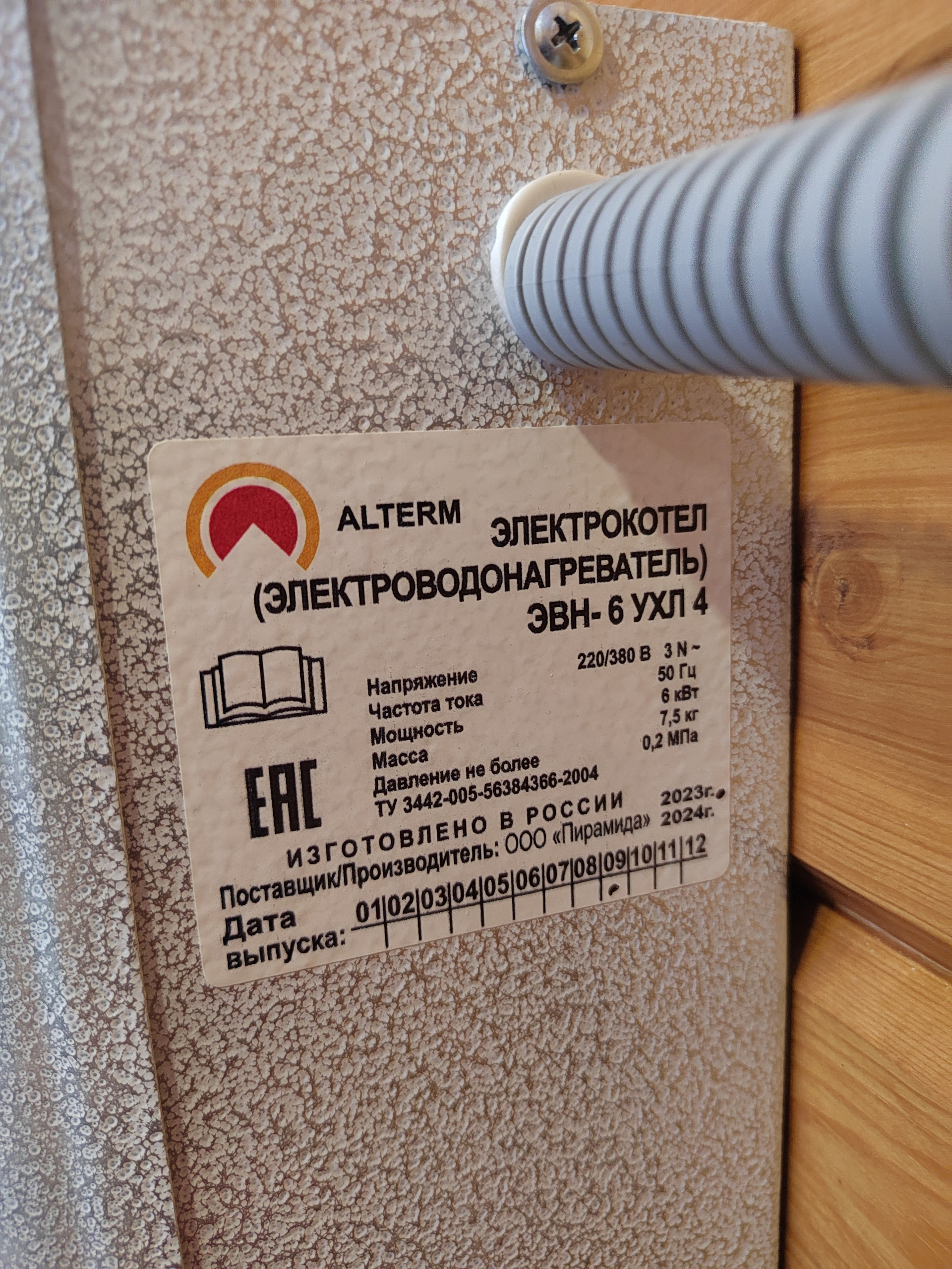 Отопление: Электрокотел 6 квт. 3 тены по 2квт