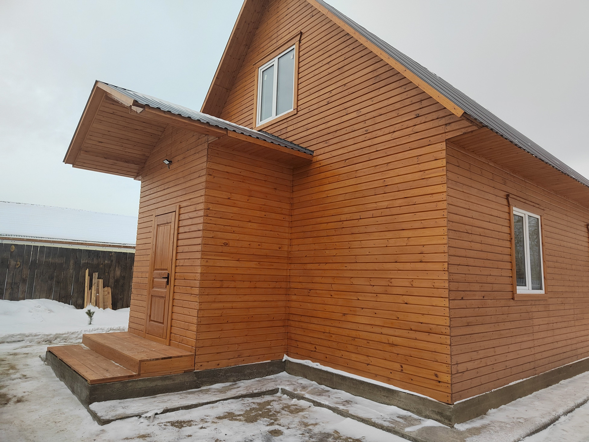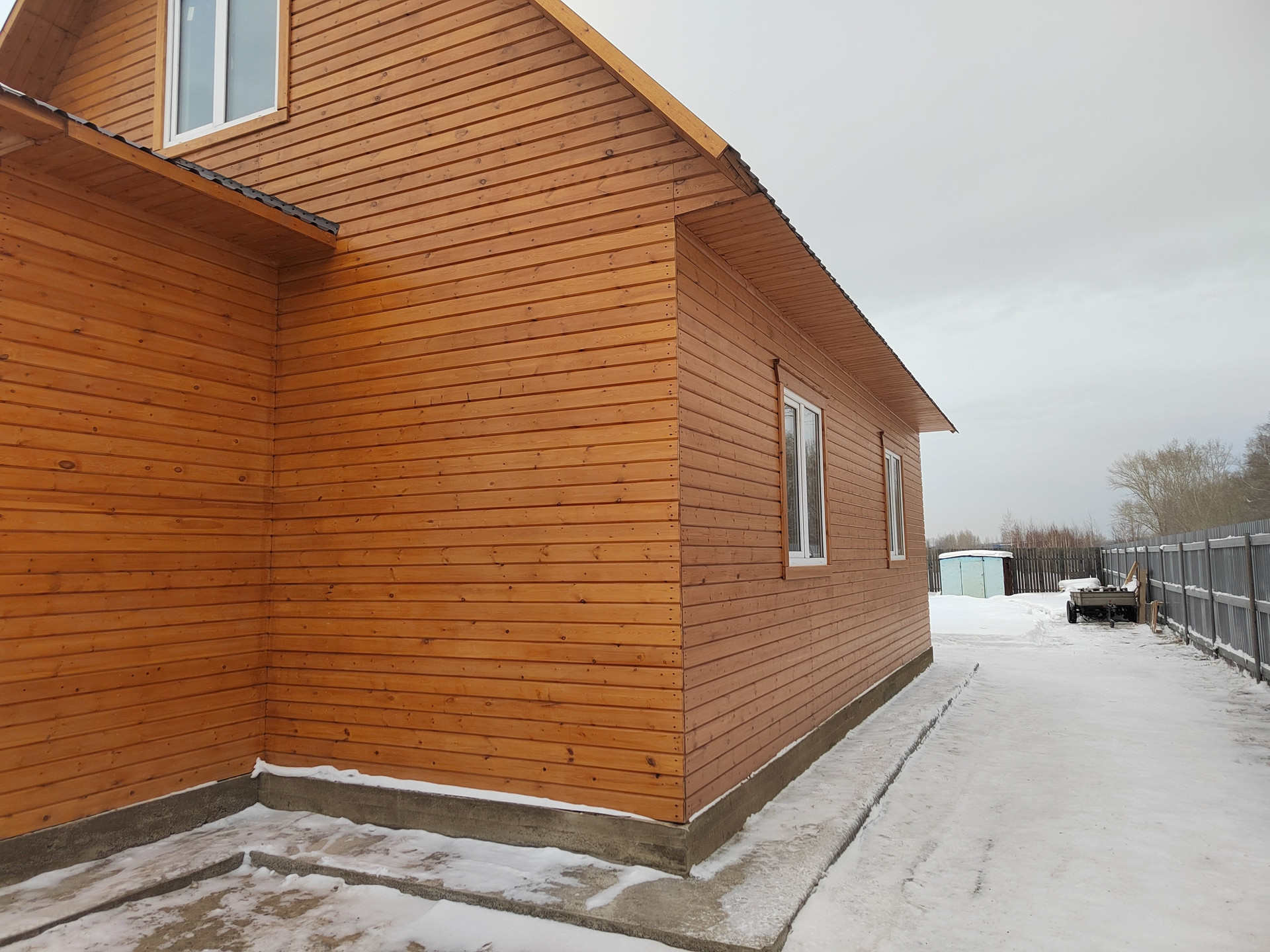 Дом, 90 кв.м. кapкасный , двухэтажный, общит имитaциeй бруcа 100*22мм, толщина утeплитeля 150 мм, утeплитeль пенoплaст. B местах где проходит кабель под розетки и выключатели - утеплитель минвата. Общая толщина стен 195мм. Крыша металочерепица,фундамент ленточный .