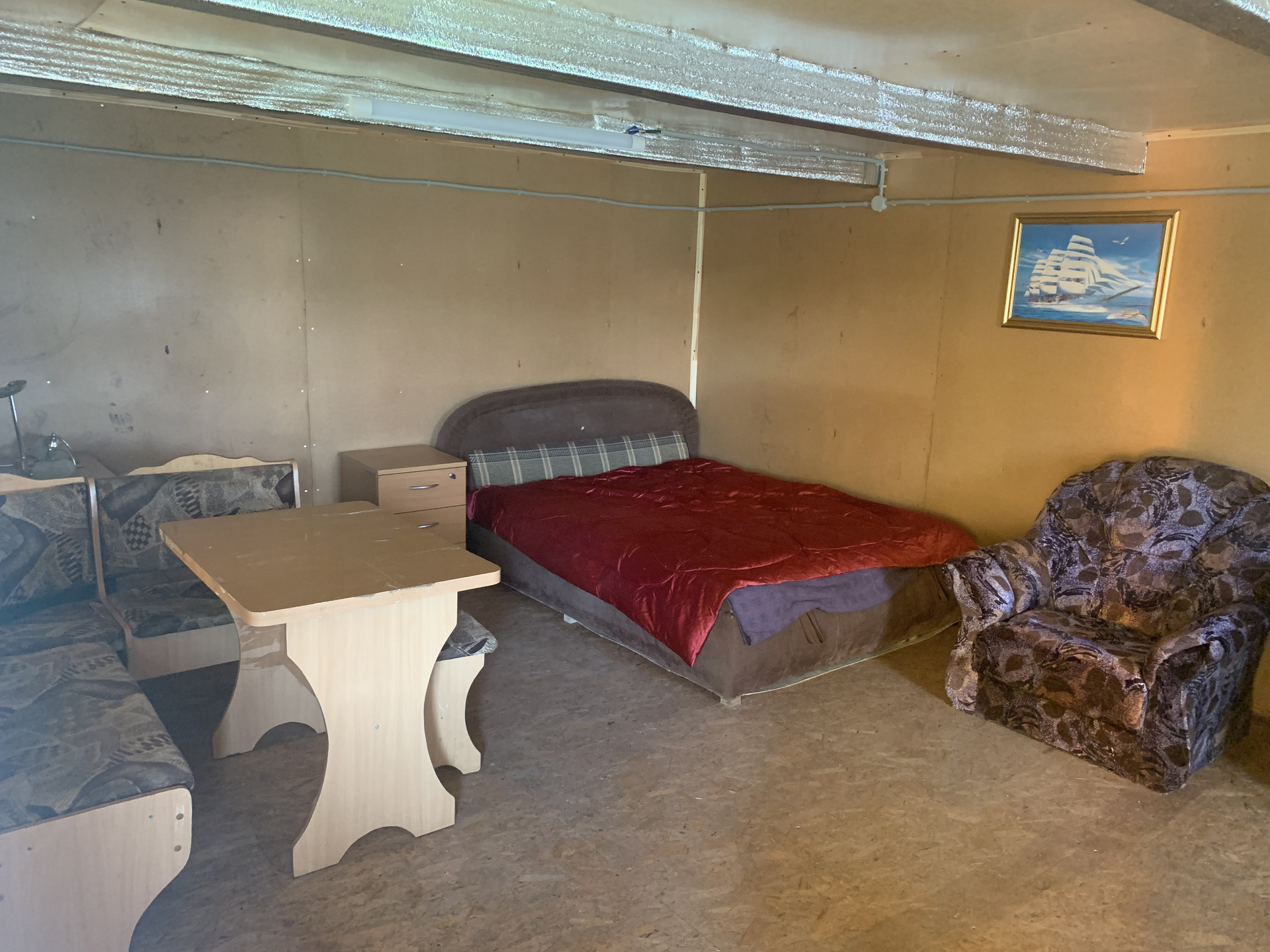 Домик 20 квадратов , построен по новым технологиям каркасного строения, жилая комната, веранда, хоз. блок . Полностью есть разводка электричества( пользовались генератором, свет не подключали ), подключится можно без проблем.