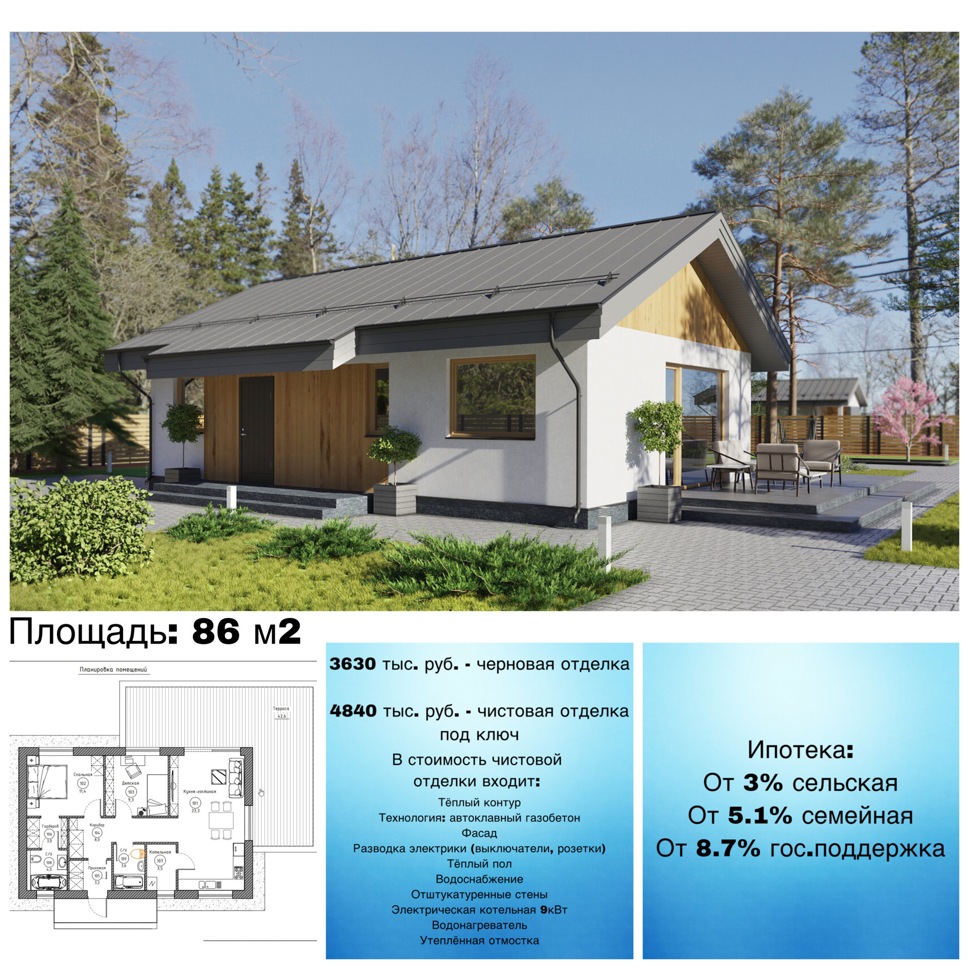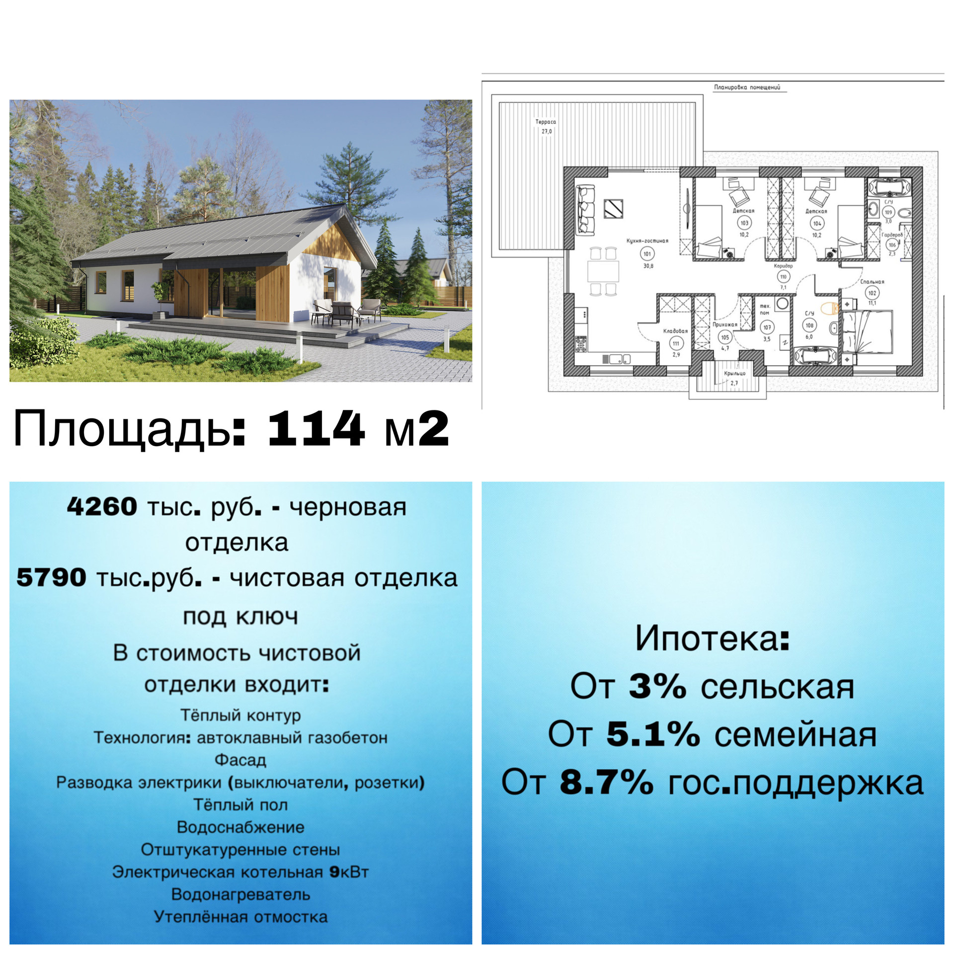 Также в объявлении представлены несколько вариантов домов для стройки по актуальным и адекватным ценам. Помимо этого, индивидуально можем подобрать проект дома и технологии строительства под ваш бюджет и потребности. Сроки строительства готового дома под ключ от 4 месяцев.