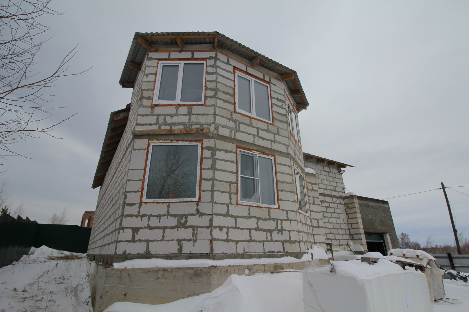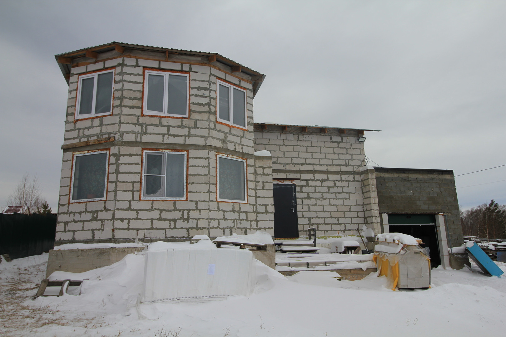Продается дом в живописном месте ДНТ Мирный. Свет, прописка, проезд круглый год, охрана. Участок 10 соток, скважина глубиной 76 метров, вода по параметрам питьевая, также устроен септик. В доме живут люди, тепловой контур закрыт полностью, крыша утеплена в два слоя (минплита, паровлагозащита и пенопласт 10см), однако отделочные работы и наружное утепление не сделано. Дом в два этажа из газоблока, к дому пристроен гараж из шлакоблока в котором обустроено место для котла и генератора на случай аварийного отключения. В доме на первом этаже большая кухня гостиная, две большие комнаты и большой совмещённый санузел. Площадь первого этажа без учёта гаража 120 м2, гаража 40м2, второй этаж 100м2 + террасса на крыше гаража около 30м2.Покупателям остаётся новый кухонный гарнитур ( духовой шкаф и варочную поверхность заберут). Все коммуникации готовы и дом готов к проживанию. Дом построен в 2014 году. Участок разработан, есть многолетние растения и молодые посадки.