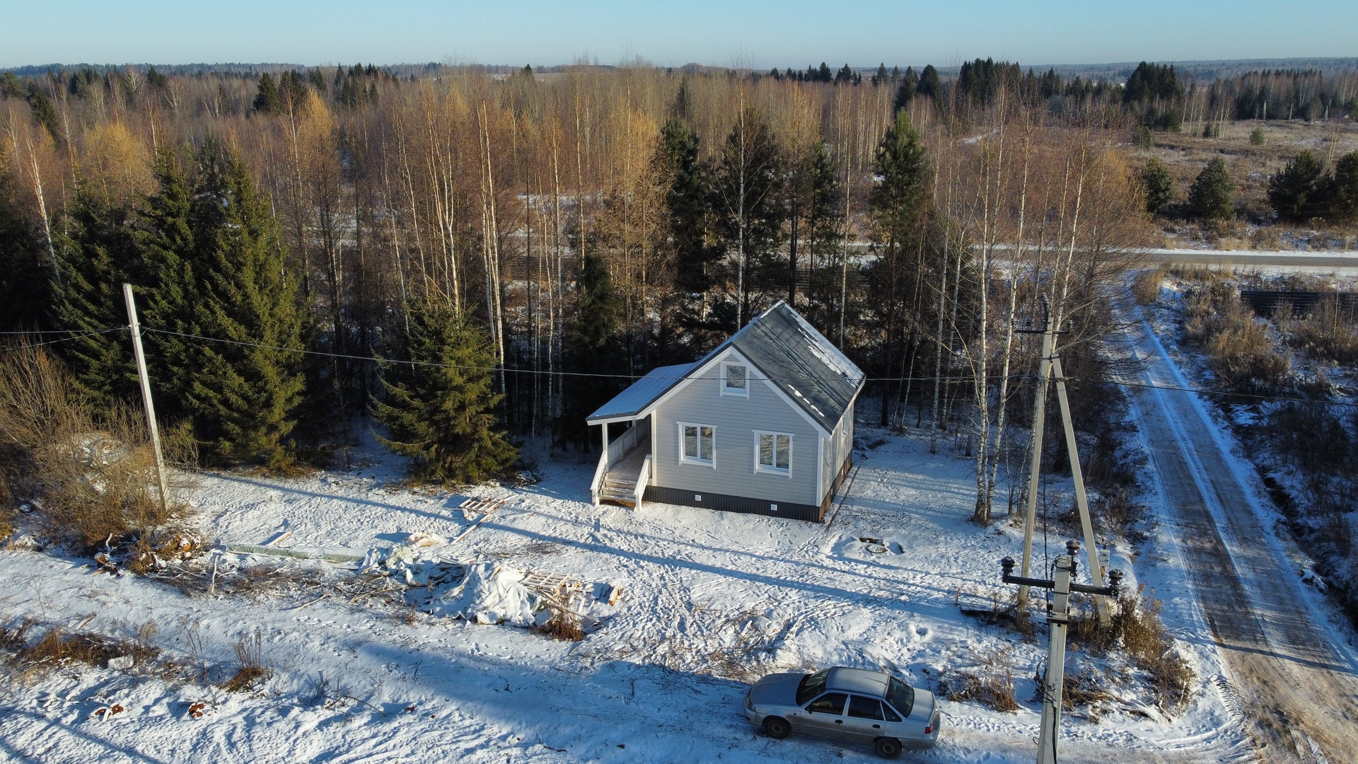 В продаже новый дом, построенный по каркасной технологии, на желозобенонных сваях. Расположенный в 3 минутах езды от д. Русский Вожой, и 10 минутах от Ягула.