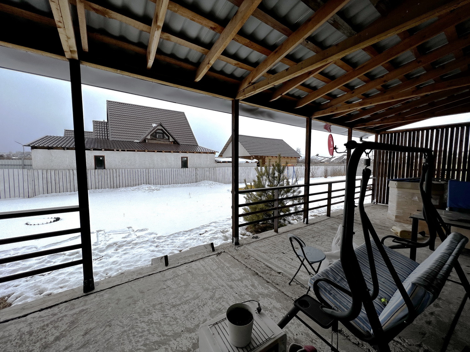 Построен по каркасной технологи. На сегодняшний день самая лучшая технология по минимизации теплопотерь. Стены толщина 200мм, потолок 250мм.