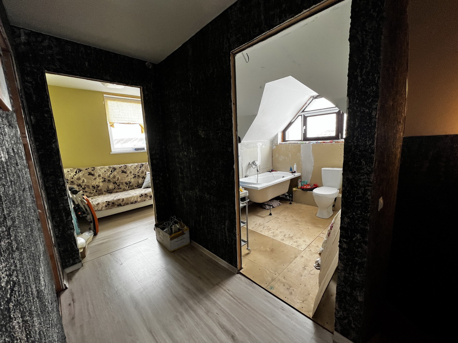 На втором этаже ванная и туалет подключены, функционируют, ремонт в сан. узле второго этажа не сделан.