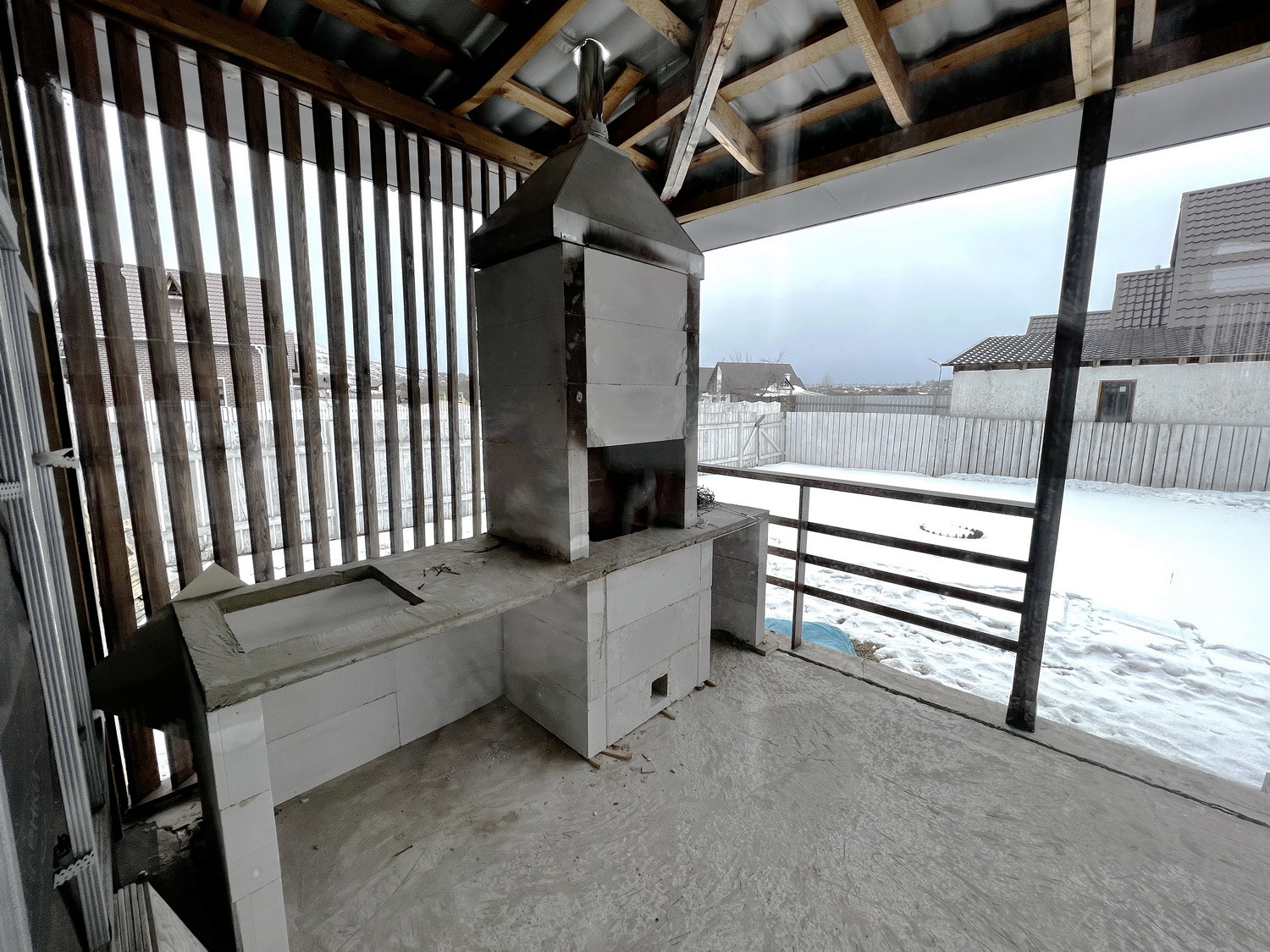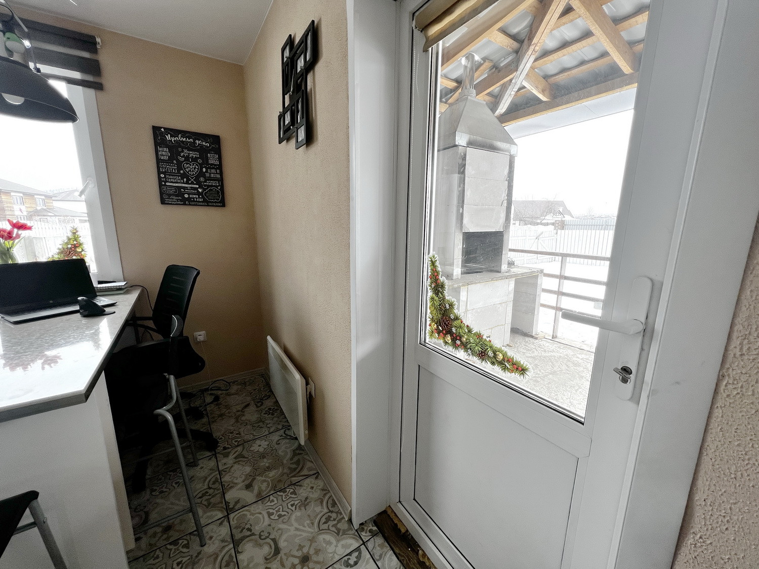 Планировка: 1этаж - кухня, гостиная, Прихожая, техническая комната, санузел туалет-душ, открытая веранда, гараж. На веранде тандыр, барбекю, мангал.