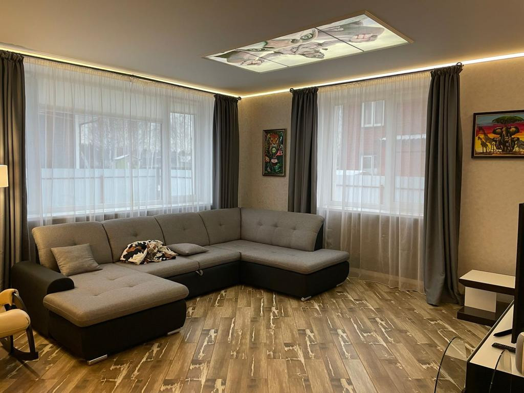 Дом находится в охраняемом коттеджном поселке, расположенном в тихом и уютном месте, в 5км от города Пушкино. ИЖС. Дом ( 15*12м) , площадь участка 8 соток. Стены: газосиликатный блок толщиной 50см(!), двойная штукатурка с сеткой снаружи, штукатурка + шпаклёвка внутри; перекрытия - ж/б монолит; потолки -3 метра . Кровля - мягкая черепица Dokke. Полностью сделан ремонт, тёплый пол, установлена вся необходимая бытовая техника, мебель и охранная сигнализация. Автономное водоснабжение скважина и эл.бойлер; водоотведение септик, эл.мощность 30кВт. На первом этаже расположена кухня, гостиная, спортзал, гардеробная, веранда и санузел; на втором этаже две спальни, кабинет, детская комната и ТРИ санузла. Участок выравнен и ухожен, брусчаткой выложены дорожки и площадка для парковки двух автомобилей. Рядом с поселком находятся несколько крупных торговых центров (Глобус, Леруа Мерлен, Акварель, Бауцентр, Дарвин, Декатлон и тд). Удобный выезд на новое скоростное Ярославское шоссе, от МКАД до поселка можно добраться за 20 минут. Документы современные , к сделке готовы . Один взрослый собственник. Никто не зарегистрирован. Быстрый выход на сделку.