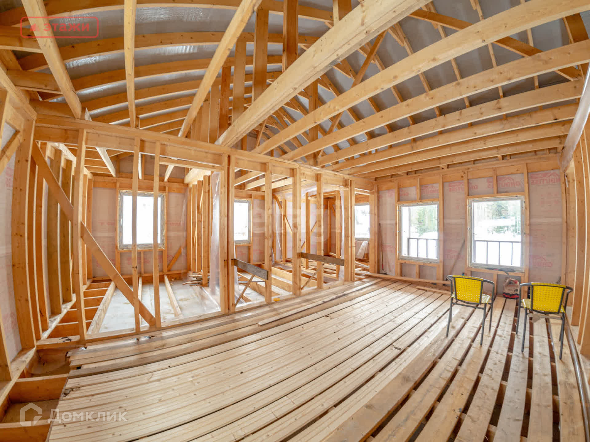 Толщина стен и стропильной системы 200 мм.