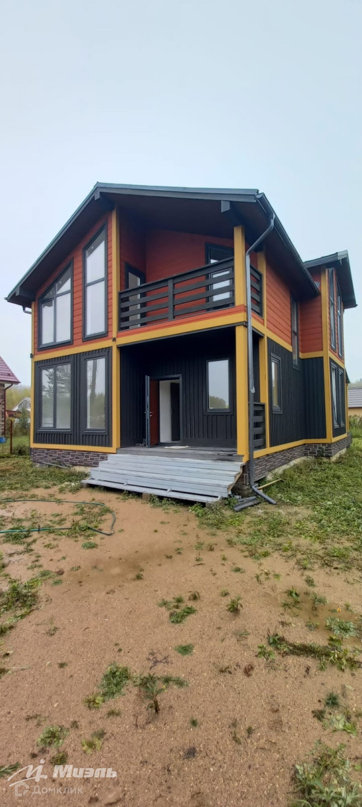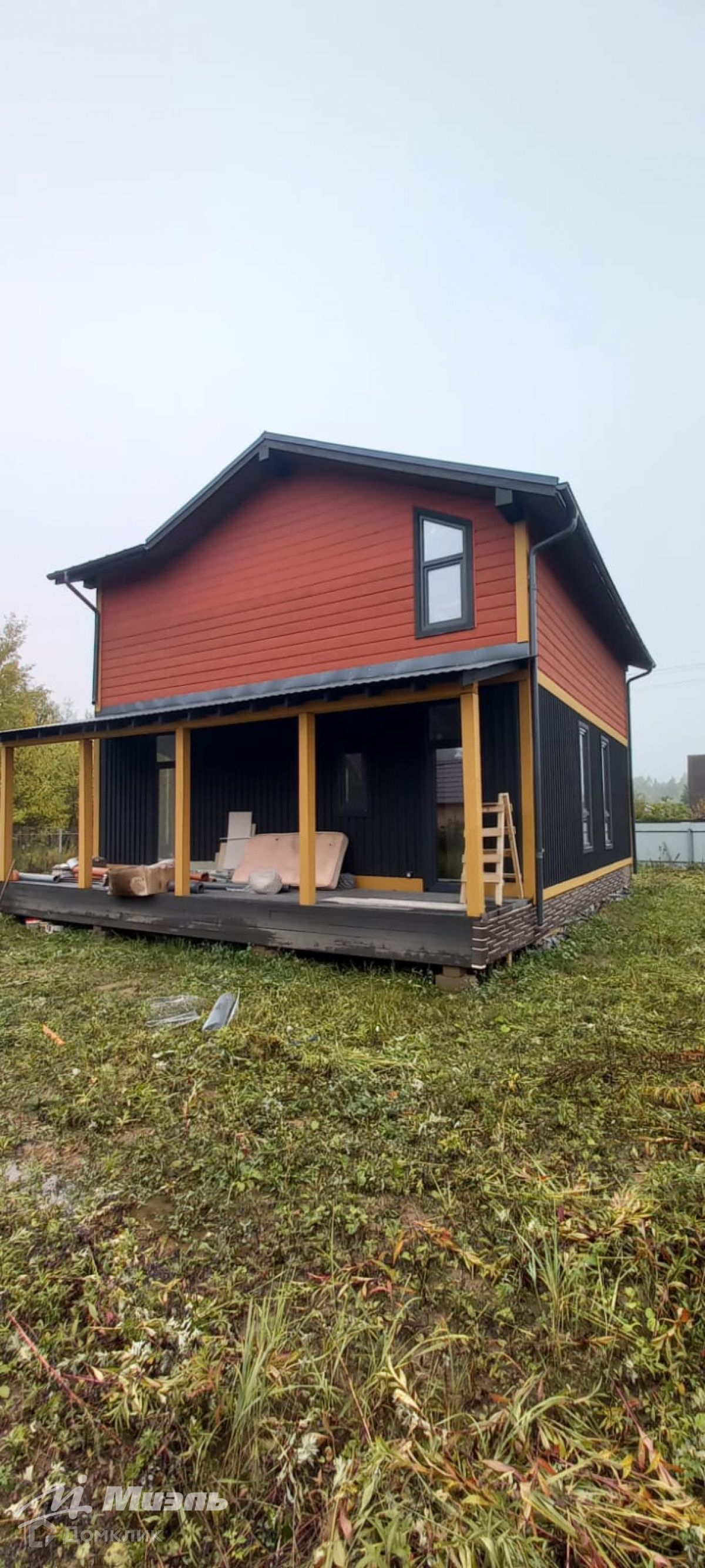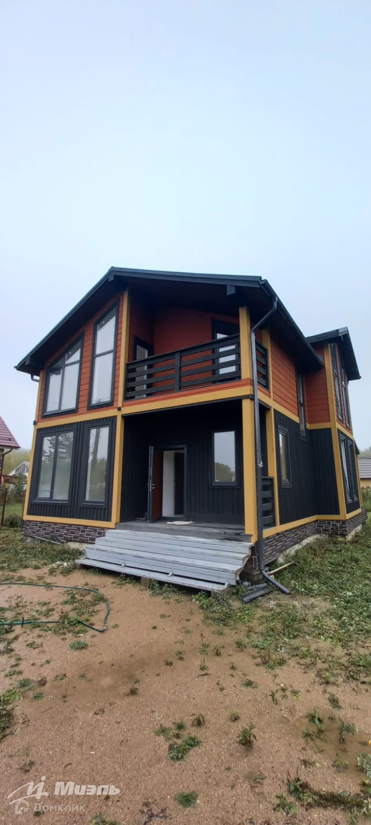 Кровля: фальцевая с полиэстером. Стены внутри и потолки выровнены, оштукатурены, покрашены. Внутренняя отделка первого этажа – гипсокартон, шпатлёвка. Внутренняя отделка 2-го этажа – QUICKDECK панели, шпатлёвка. Стеклопакеты двойные. Пол 1-го этажа – плитка. Пол 2го этажа – ламинат. Лестница на металлическом каркасе.