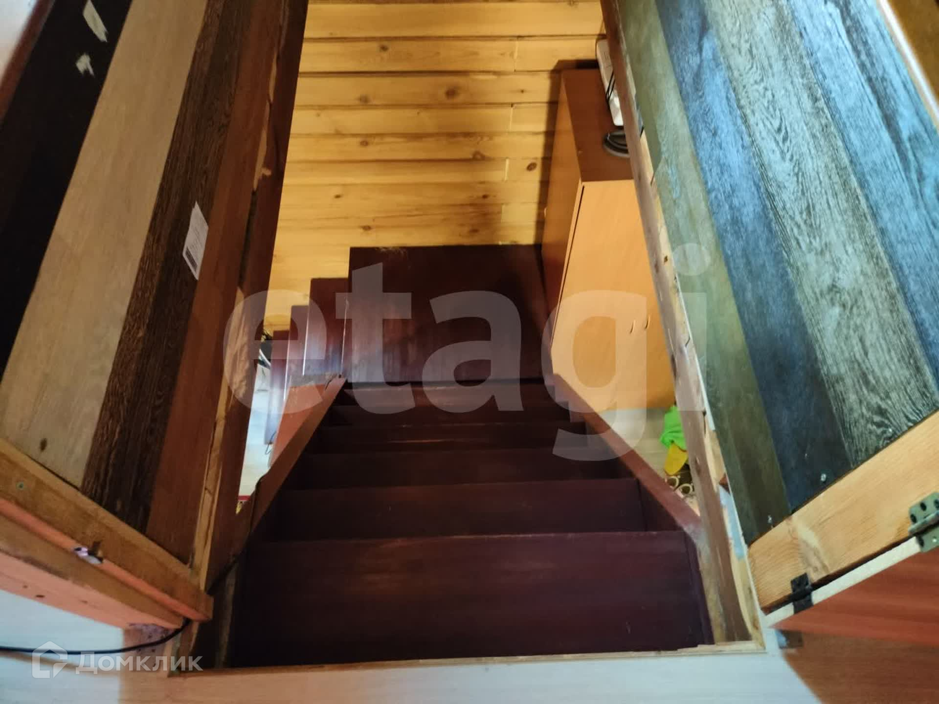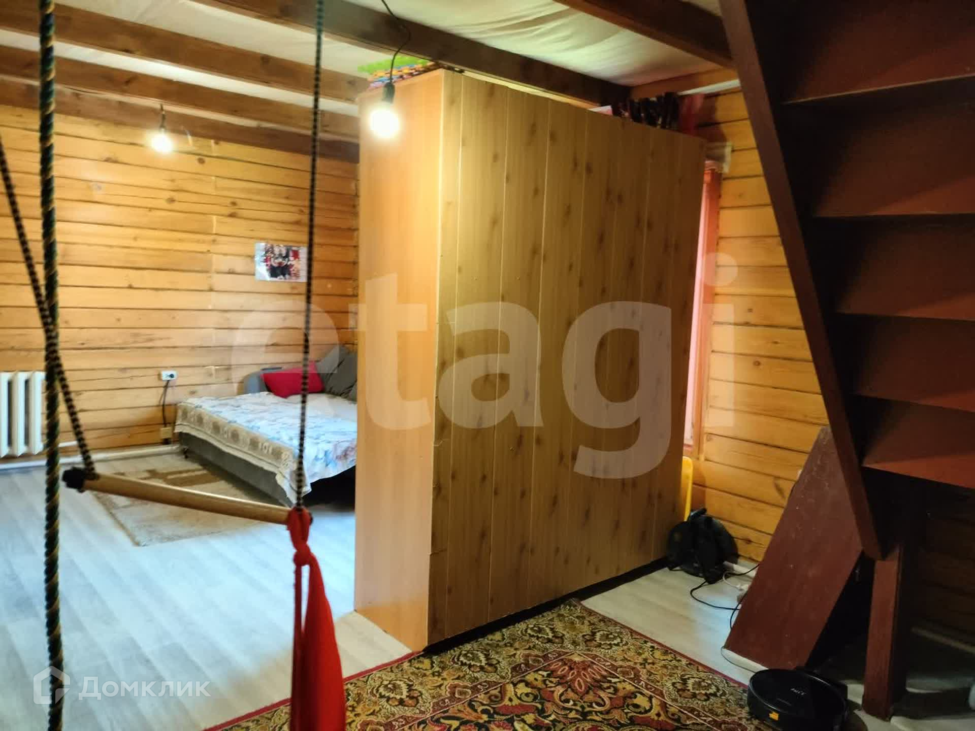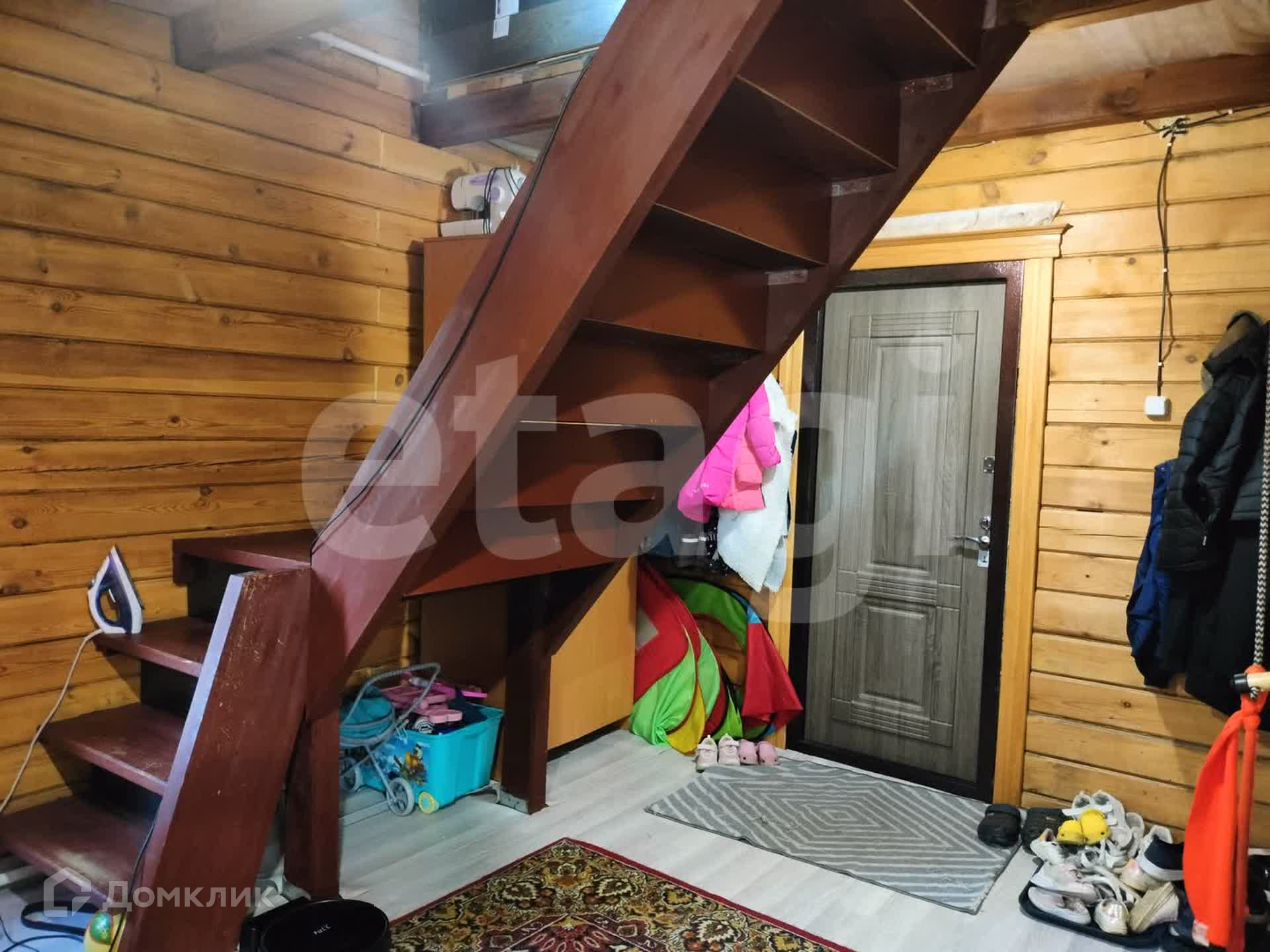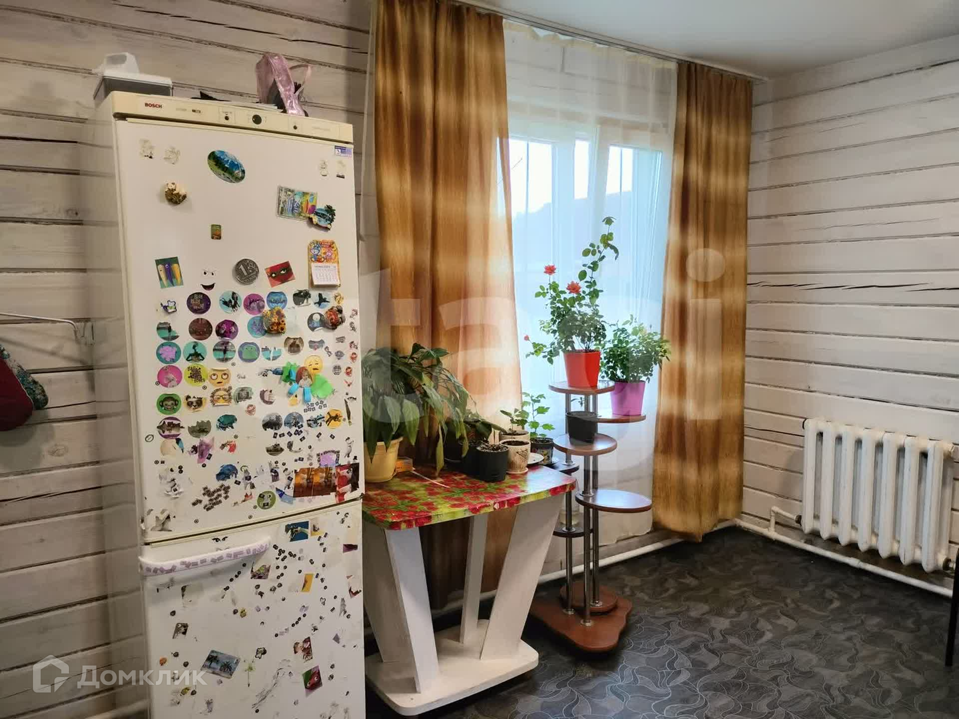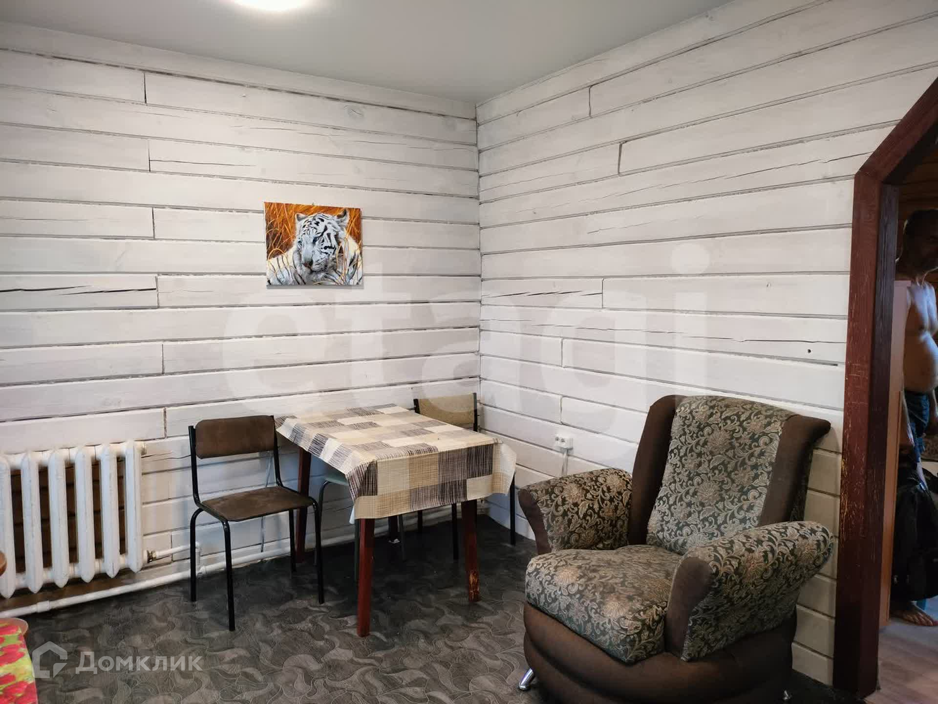 Дом из бруса, снаружи обшит сайдингом, утеплен. Внутри отделка под дерево. Потолки натяжные, везде линолеум, окна ПВХ. Санузел совмещен, есть водонагреватель. Вода - скважина (14 м), отопление - твердотопливный котел, канализация - септик.