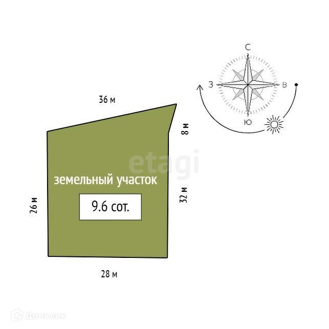 Площадь участка 9.6 сот.