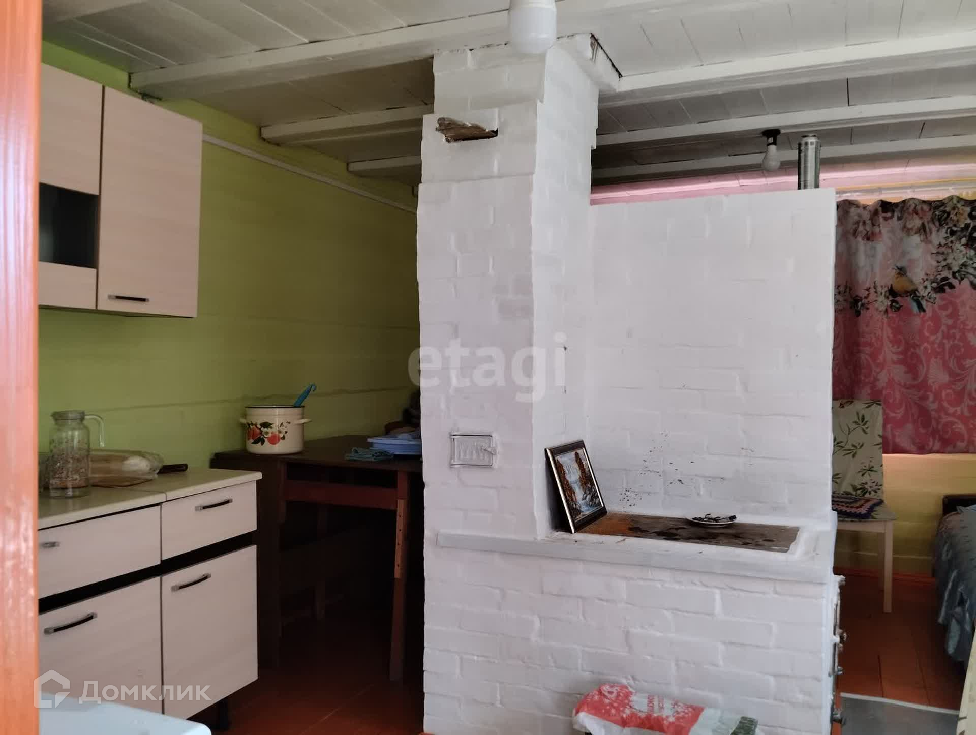 В доме сделан хороший ремонт имеется уютный камин, который объединит вашу семью в зимние вечера. Две просторные спальные комнаты , гостиная и огромная кухня привлекательны для большой и дружной семьи. Также имеется просторная гардеробная и просторный погреб для хранения осенних заготовок и картофеля.
