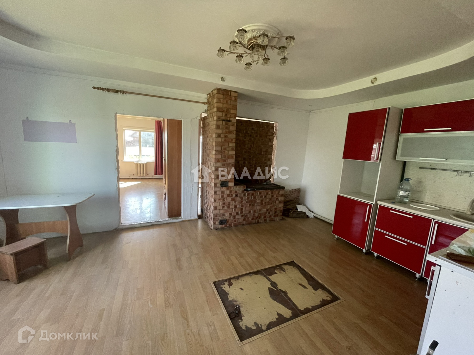 Первый большой дом готов к проживанию, водоснабжение своя скважина, электричество подведено, выгребная яма, отопление печное плюс котел, выполнен косметический ремонт, пластиковые окна, ламинат, металлические батареи под  каждым окном, стены ровные оштукатурены, санузел раздельный.