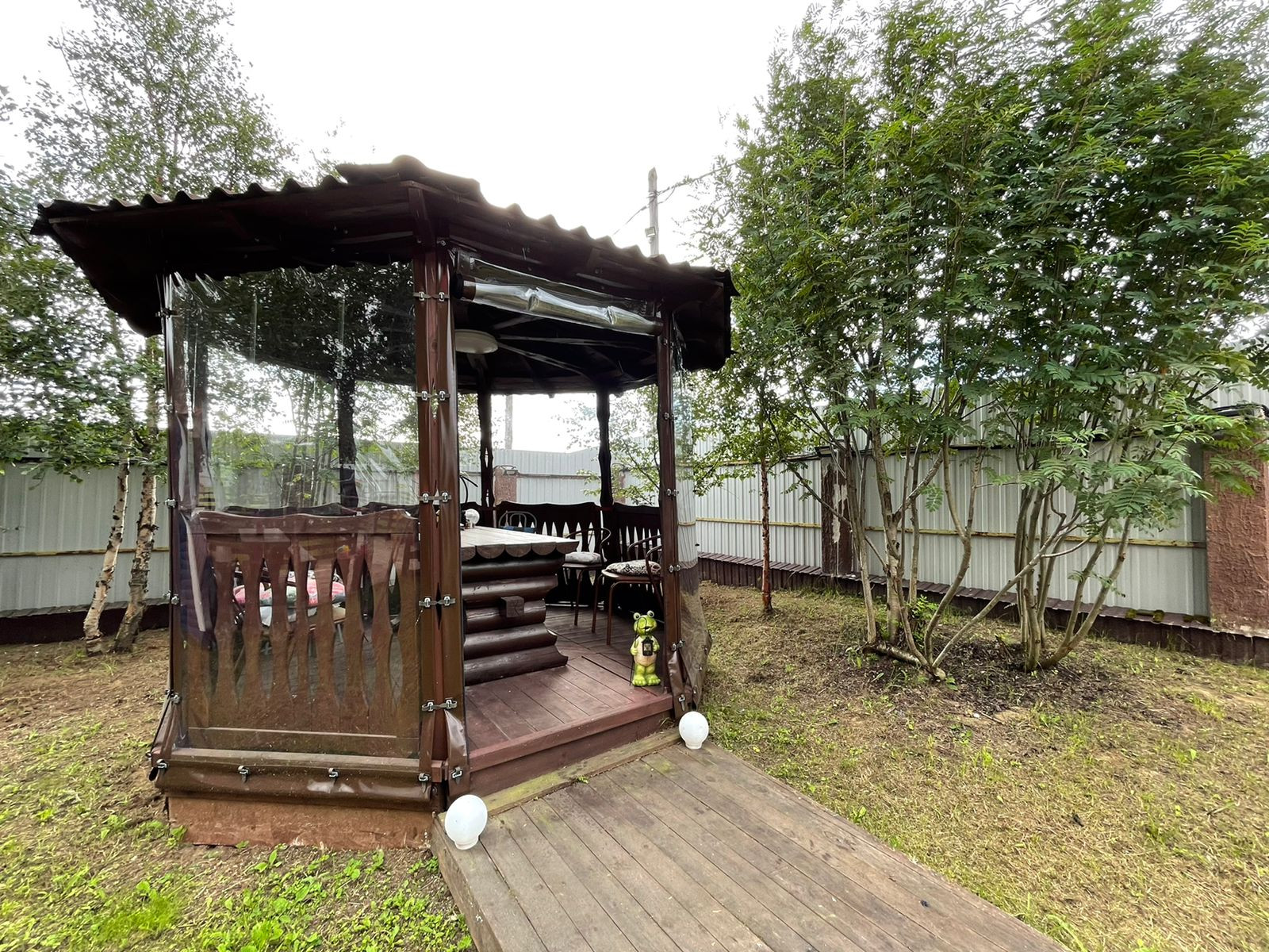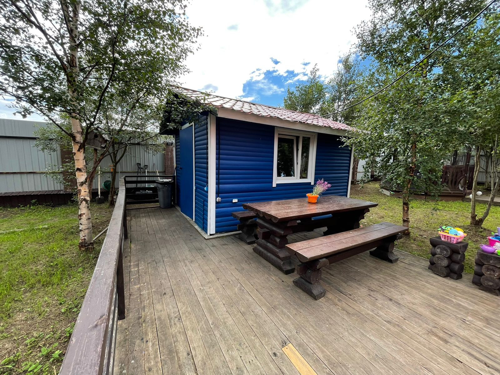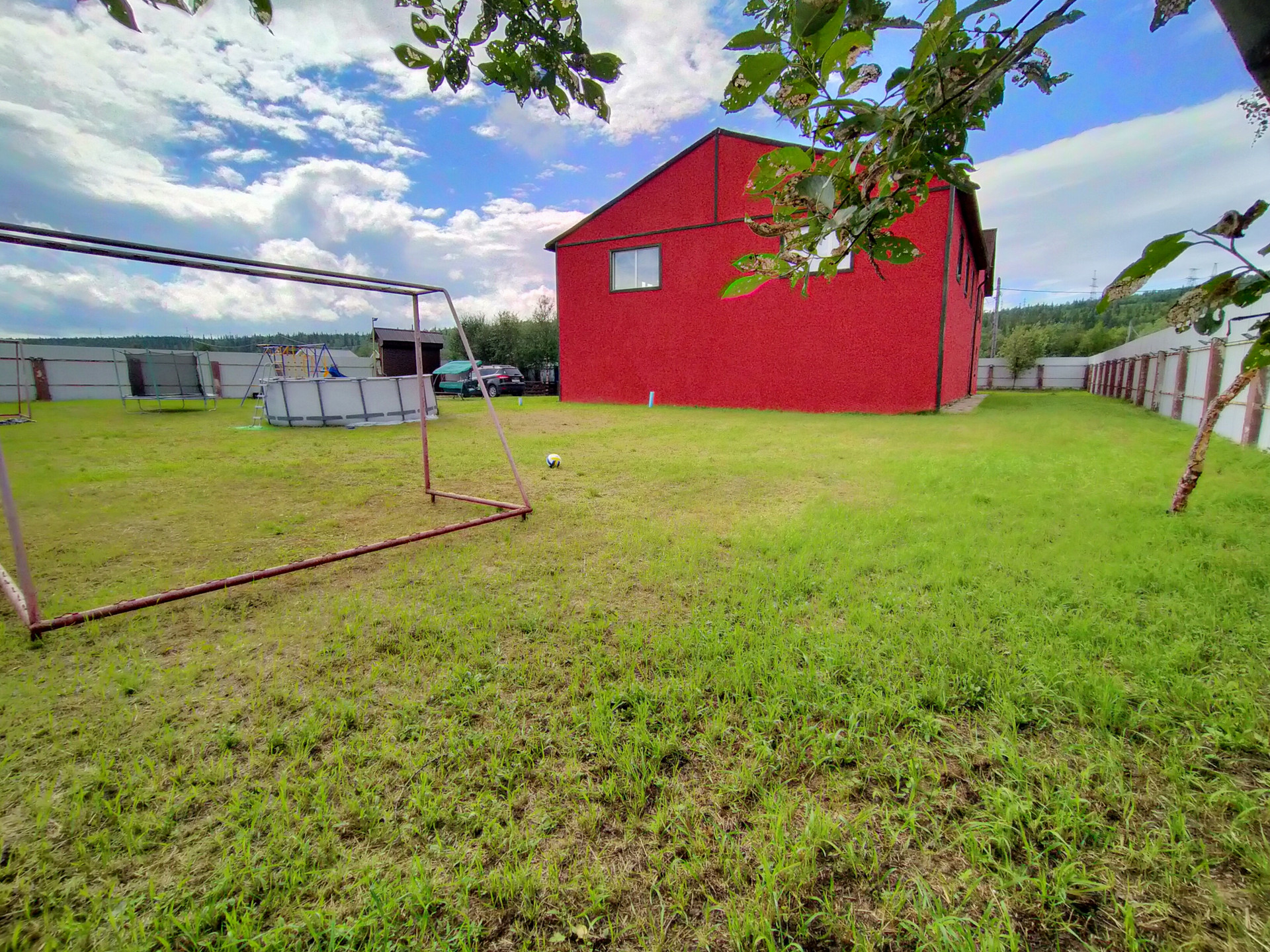 Участок 20 соток, огорожен высоким забором с подсветкой по всему периметру. Также есть летняя беседка (установлены мягкие окна), также летний домик, рядом мангальная с зоной отдыха. Установлена детская игровая площадка,бассейн,большой батут.