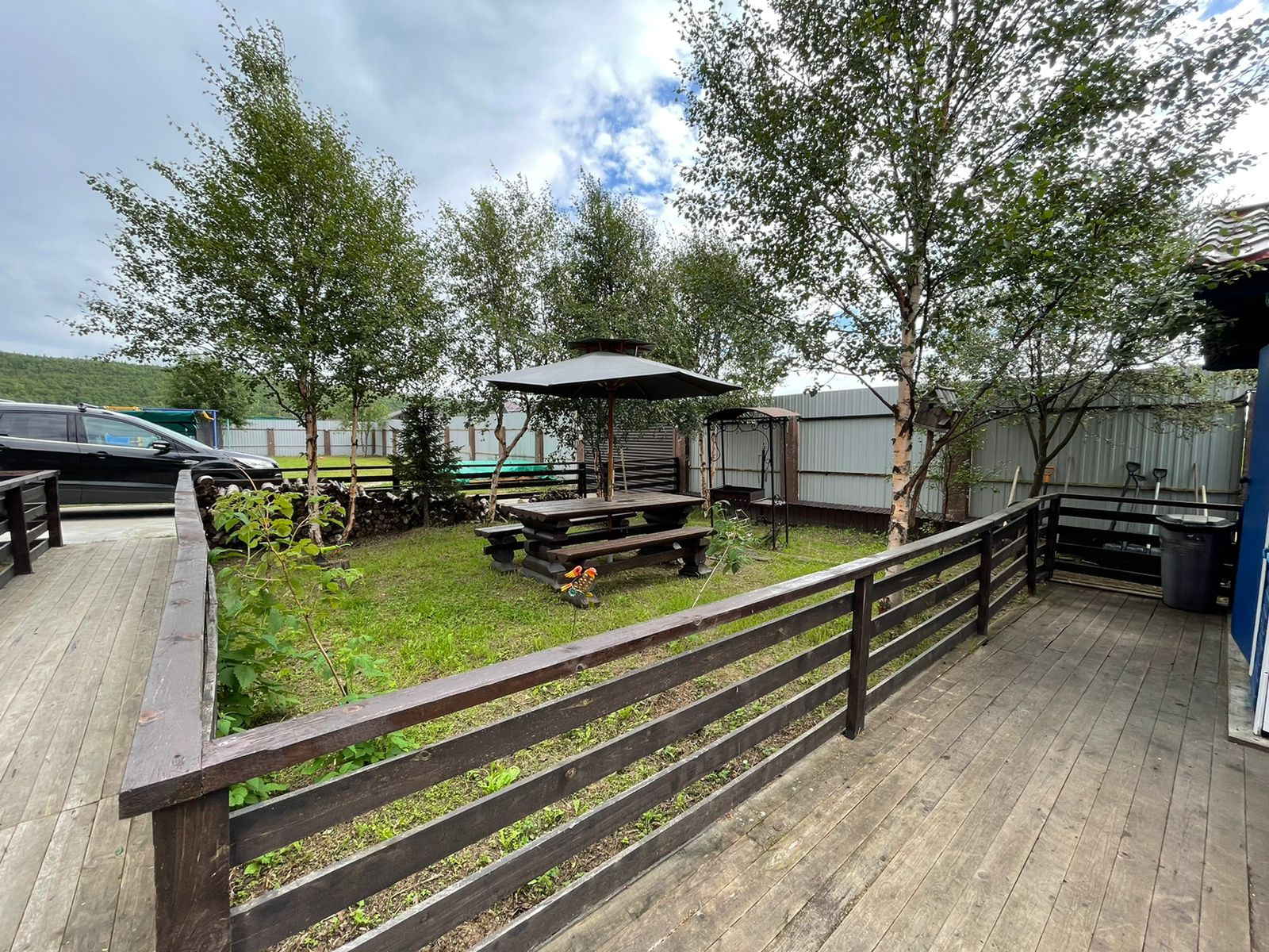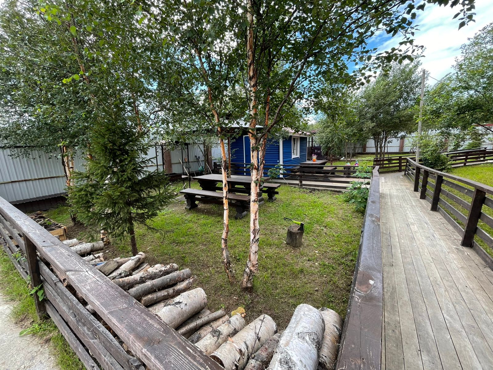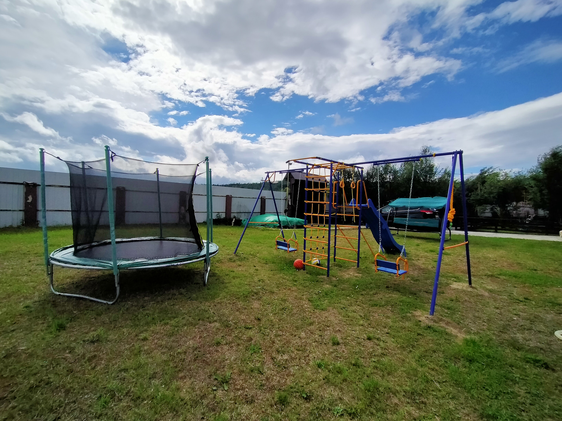 Участок 20 соток, огорожен высоким забором с подсветкой по всему периметру. Также есть летняя беседка (установлены мягкие окна), также летний домик, рядом мангальная с зоной отдыха. Установлена детская игровая площадка,бассейн,большой батут.