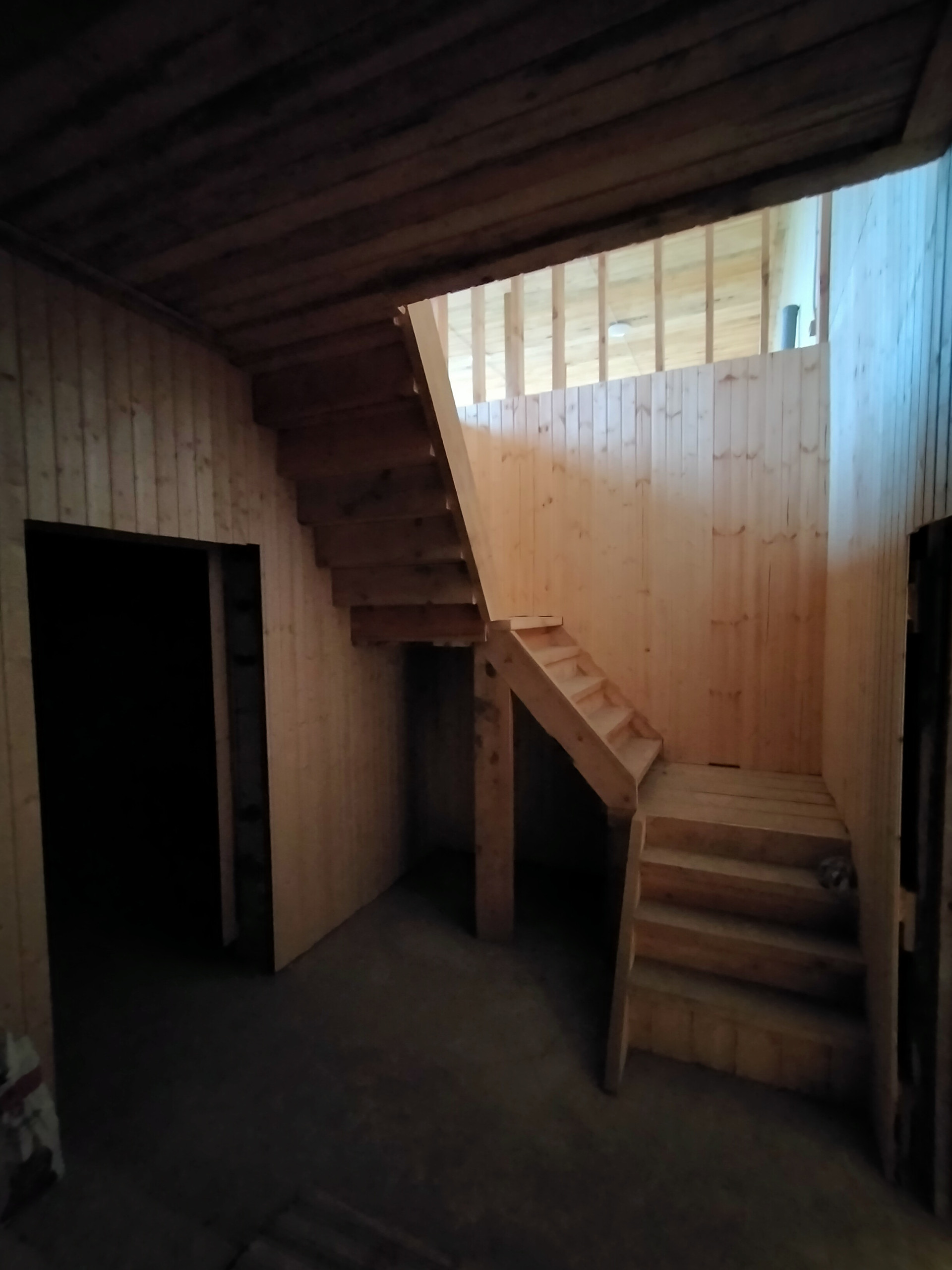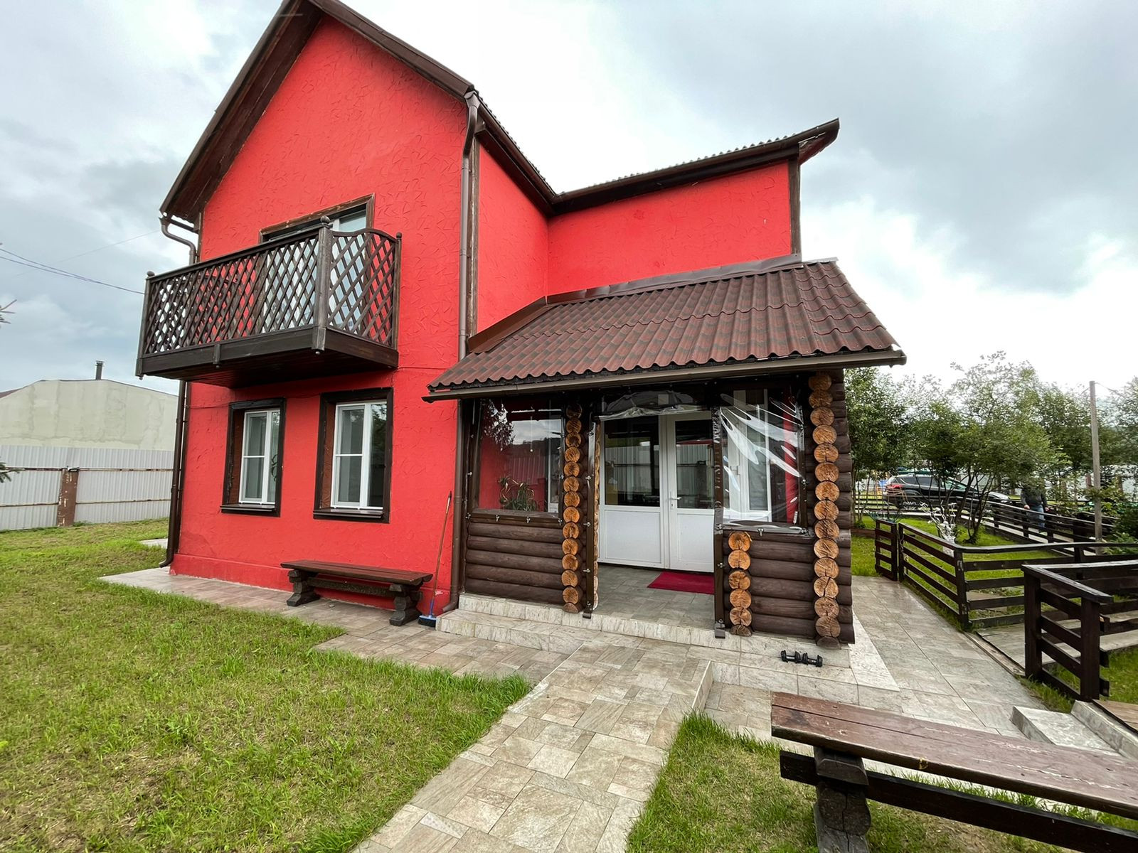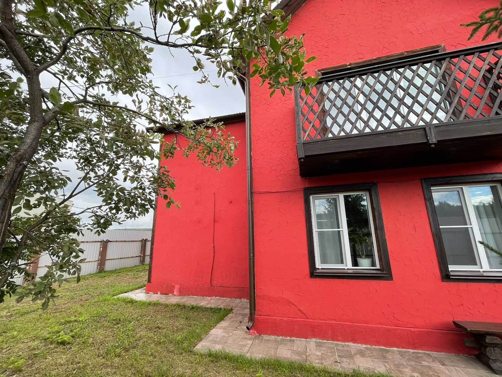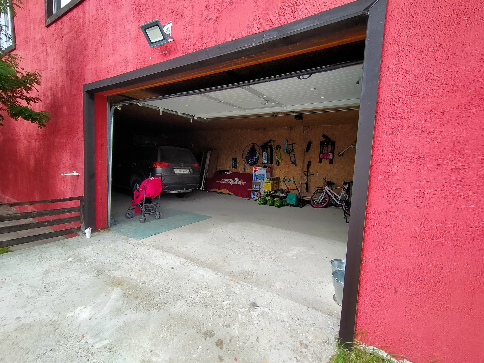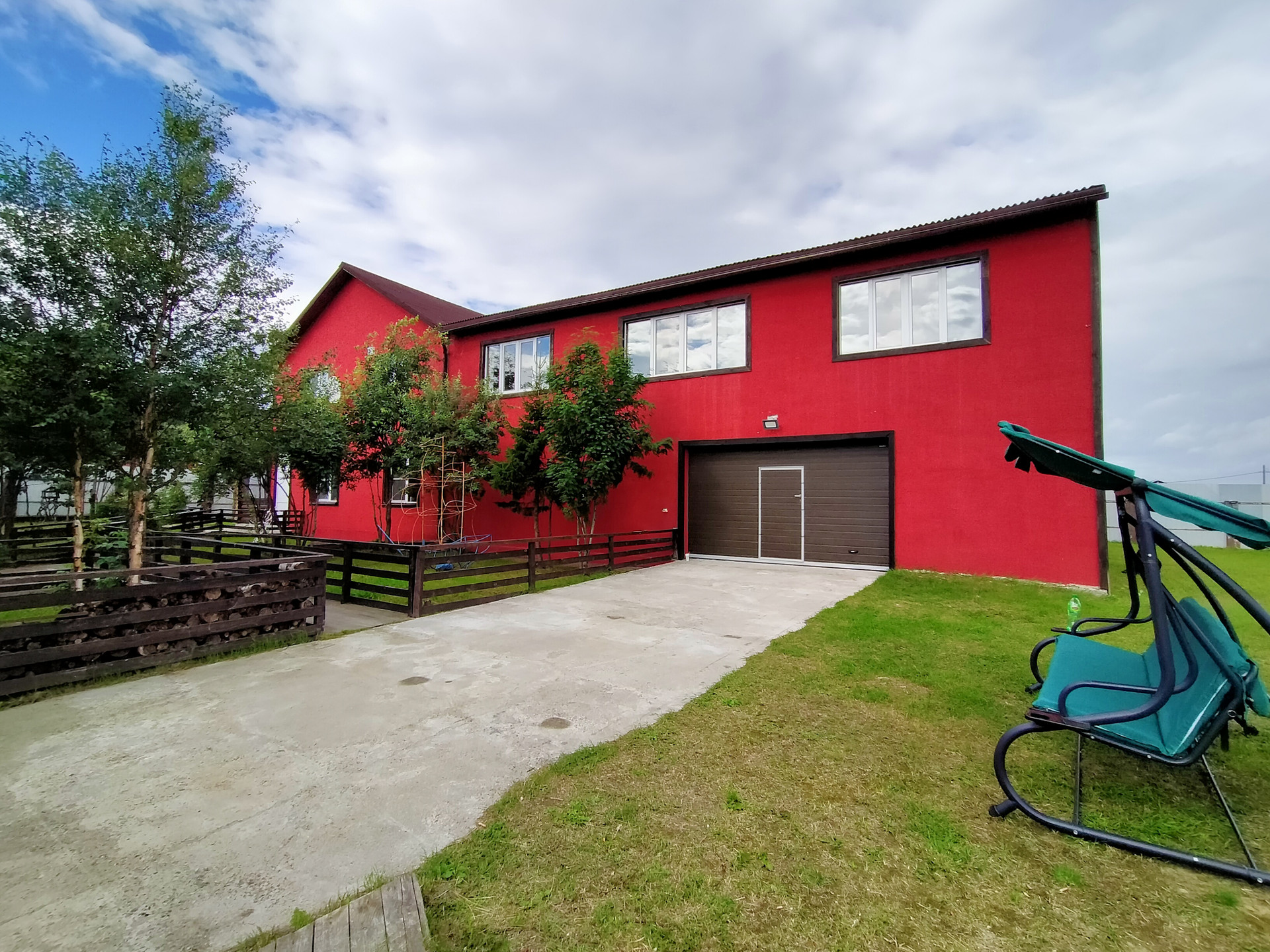 Вторая часть дома площадью 600 кв.м. распланирована под гараж, сауну с бассейном и парилкой, 2 этаж 2 больших помещения с большими окнами.