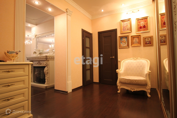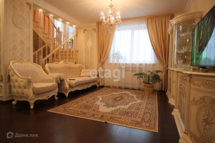 На первом этаже - прихожая (тамбур) со стороны улицы (вместительное помещение с дверью) - вход- прихожая в доме. Имеет выход в котельную, вход в сауну (душ, парилка, зона отдыха) и гостиную. Вместительная, просторная и светлая гостиная распределена на зону отдыха, столовую и кухонную зону. Высокие потолки, классический интерьер, дополнительное освещение, камин - все это создает уютную, теплую атмосферу.