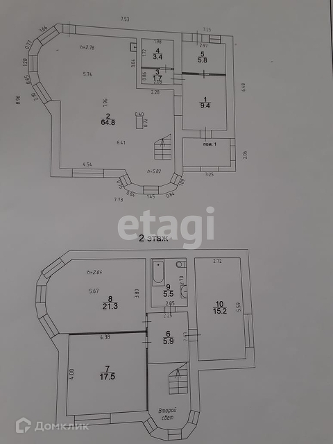 На втором расположены 3 спальни, площадью: 17,5 кв, 21 кв и 15,2 кв. и сан.узел (ванная, туалет, раковина)