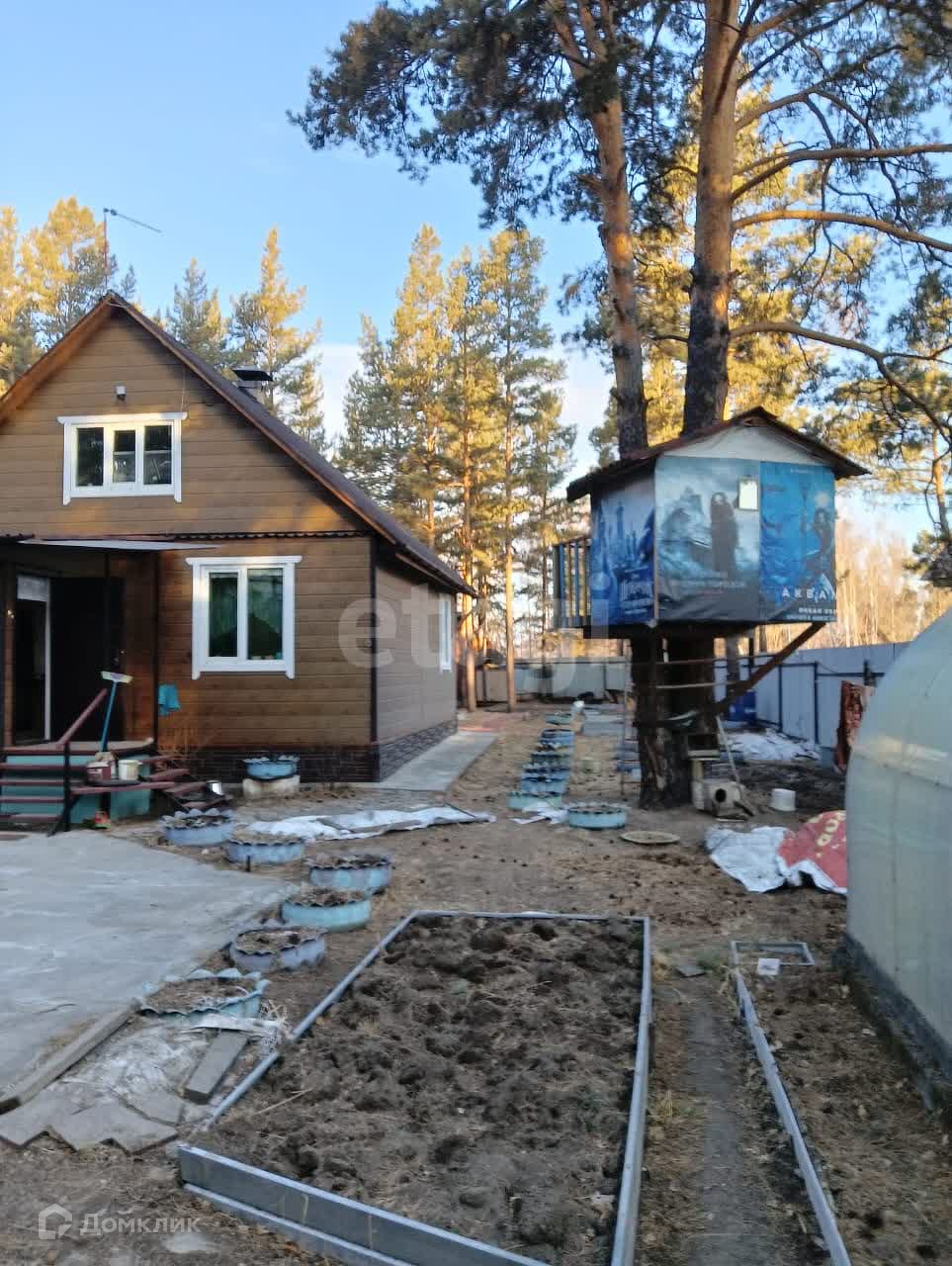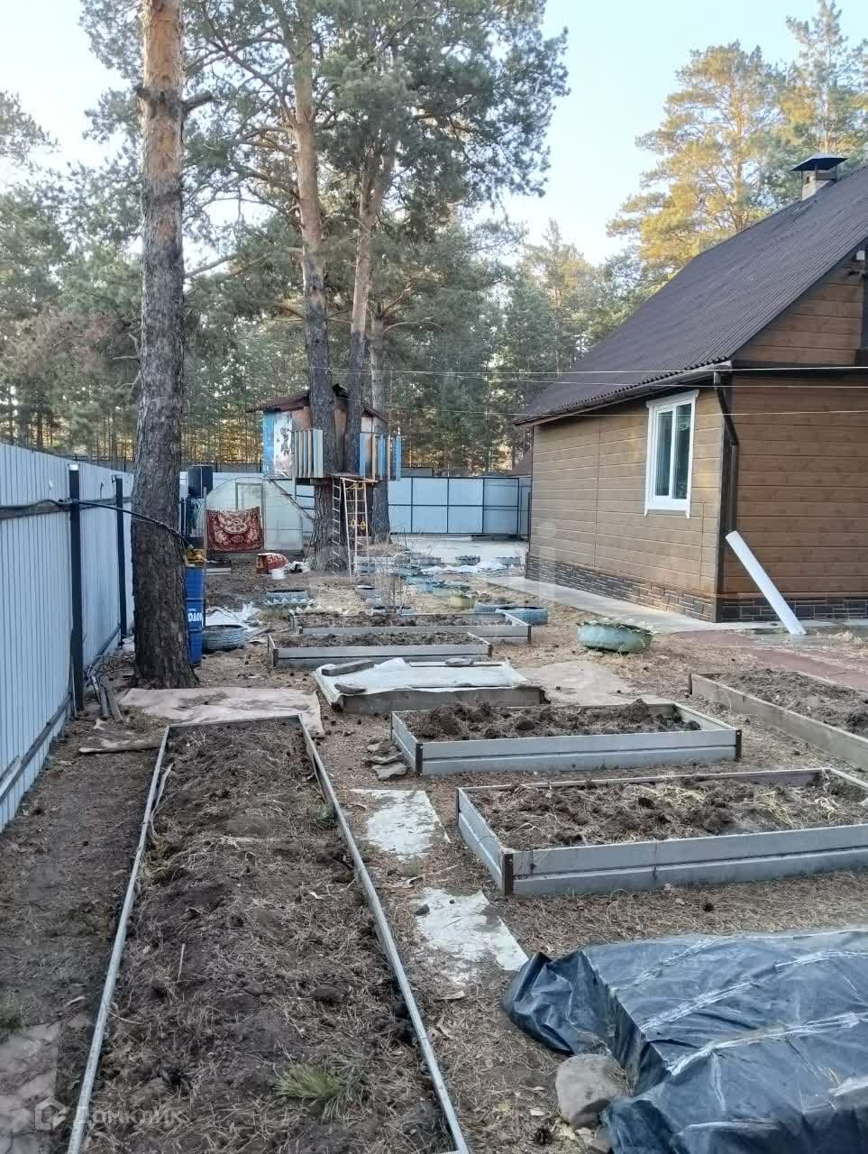 Территория участка облагорожена. Домик на дереве и сделана канатная дорога для спуска. Веселуха для детей. Гараж на два автомобиля. 8*6.В гараже есть погреб для хранения консервации и овощей. Баня. 4*7 с предбанником, мойкой и парилкой . В мойке водонагреватель и душевая кабина . Теплицы 4*2 ,- 2 шт. Имеются плодово-ягодные насаждения. Поляна с лесной земляникой, малина, вишня черноплодка, смородина. Много полевых цветов. Грядки с метала, прослужат долго. Телевидение, скоростной интернет Wi-Fi, видеонаблюдение.