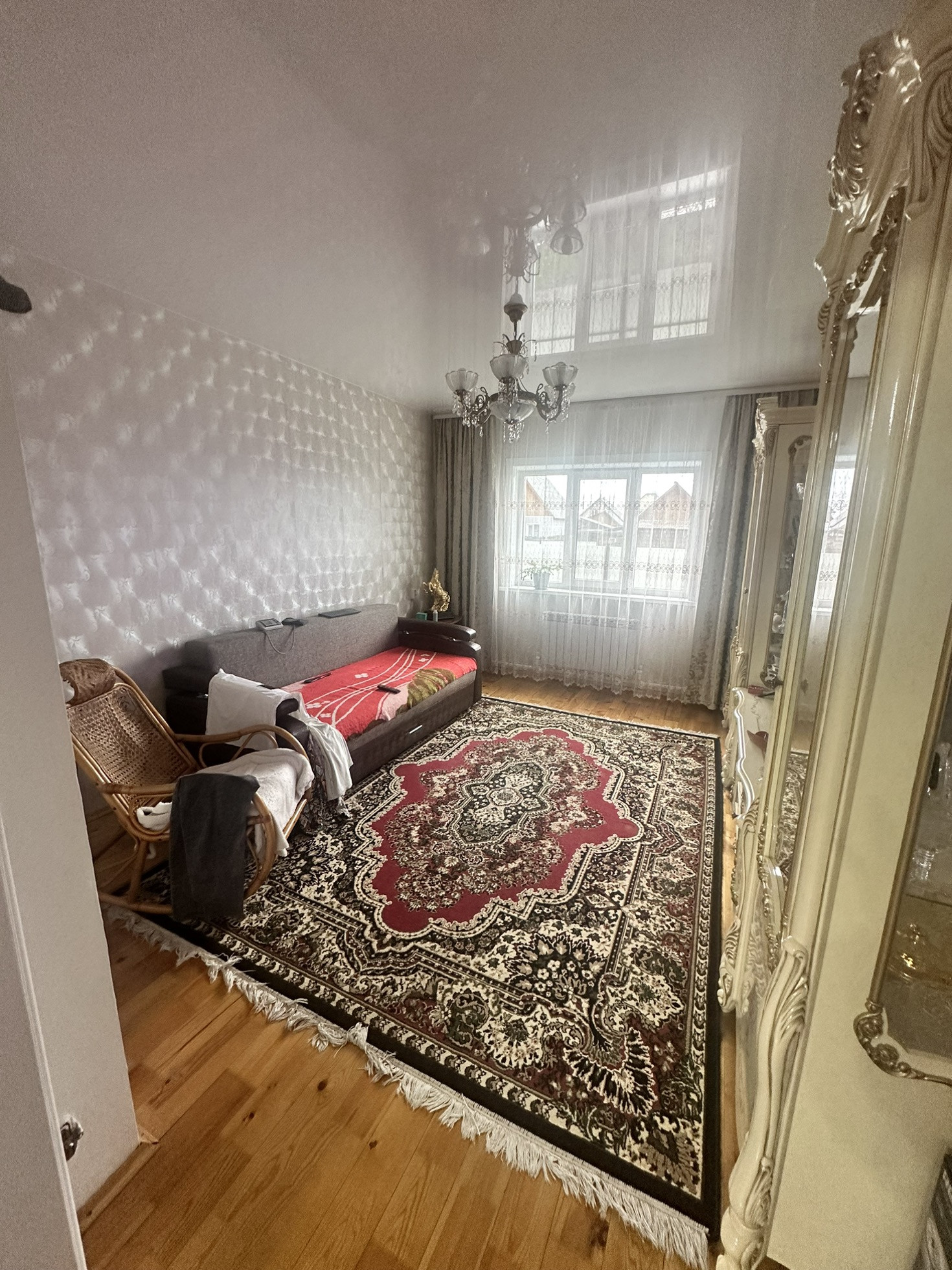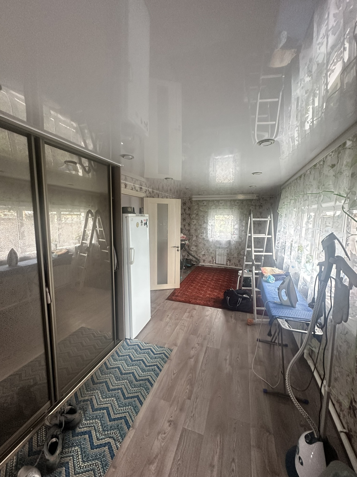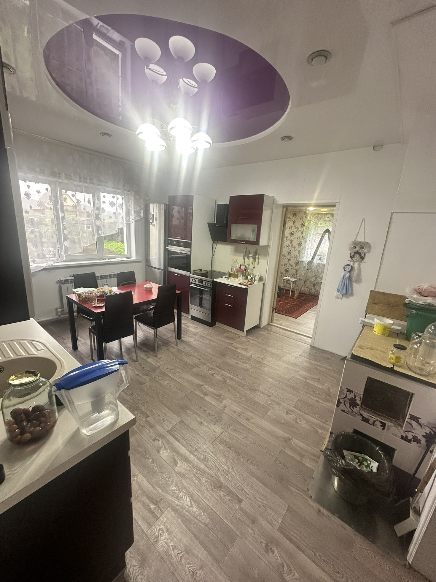 В четырехкомнатном доме хороший ремонт, натяжные потолки.