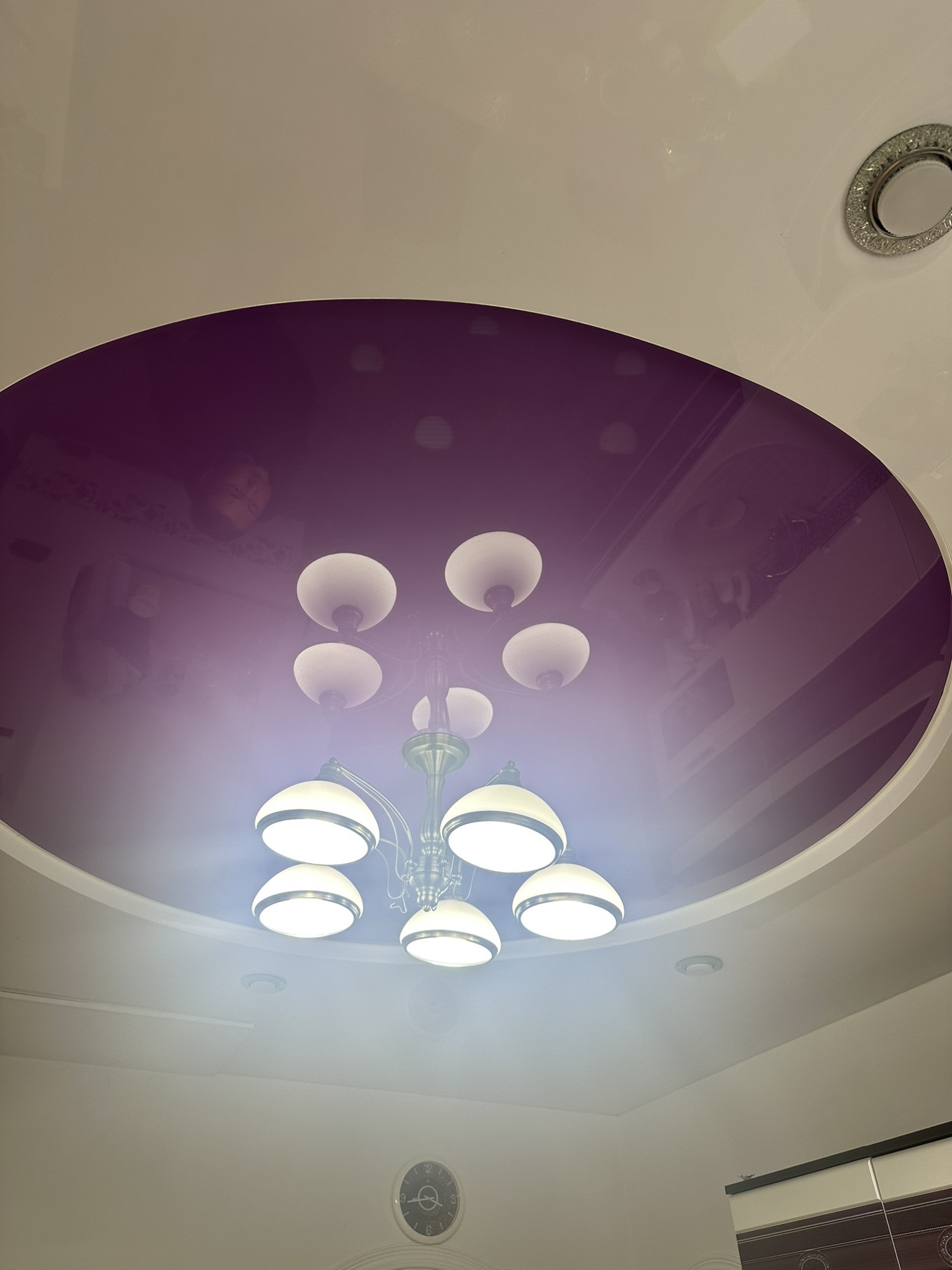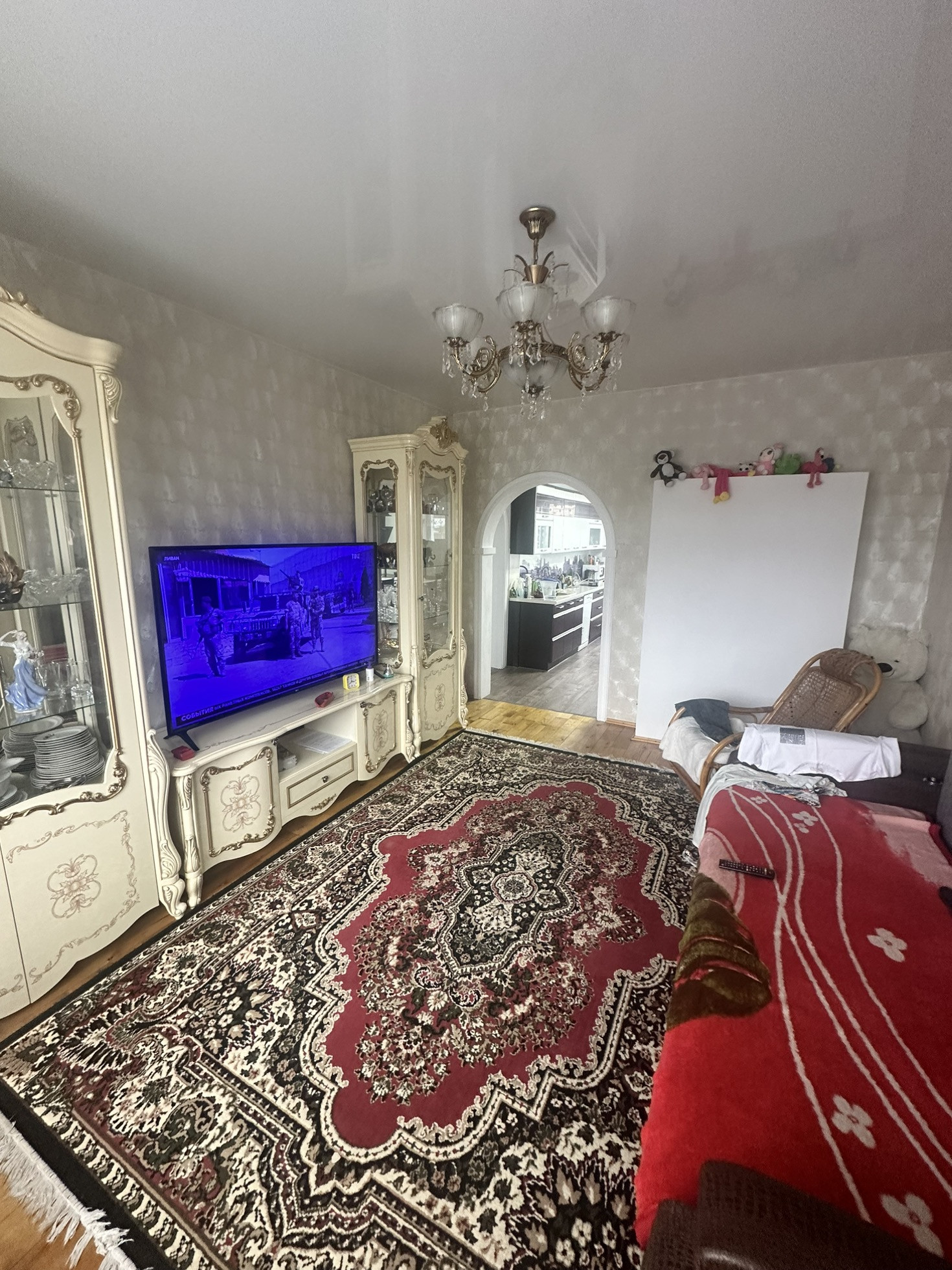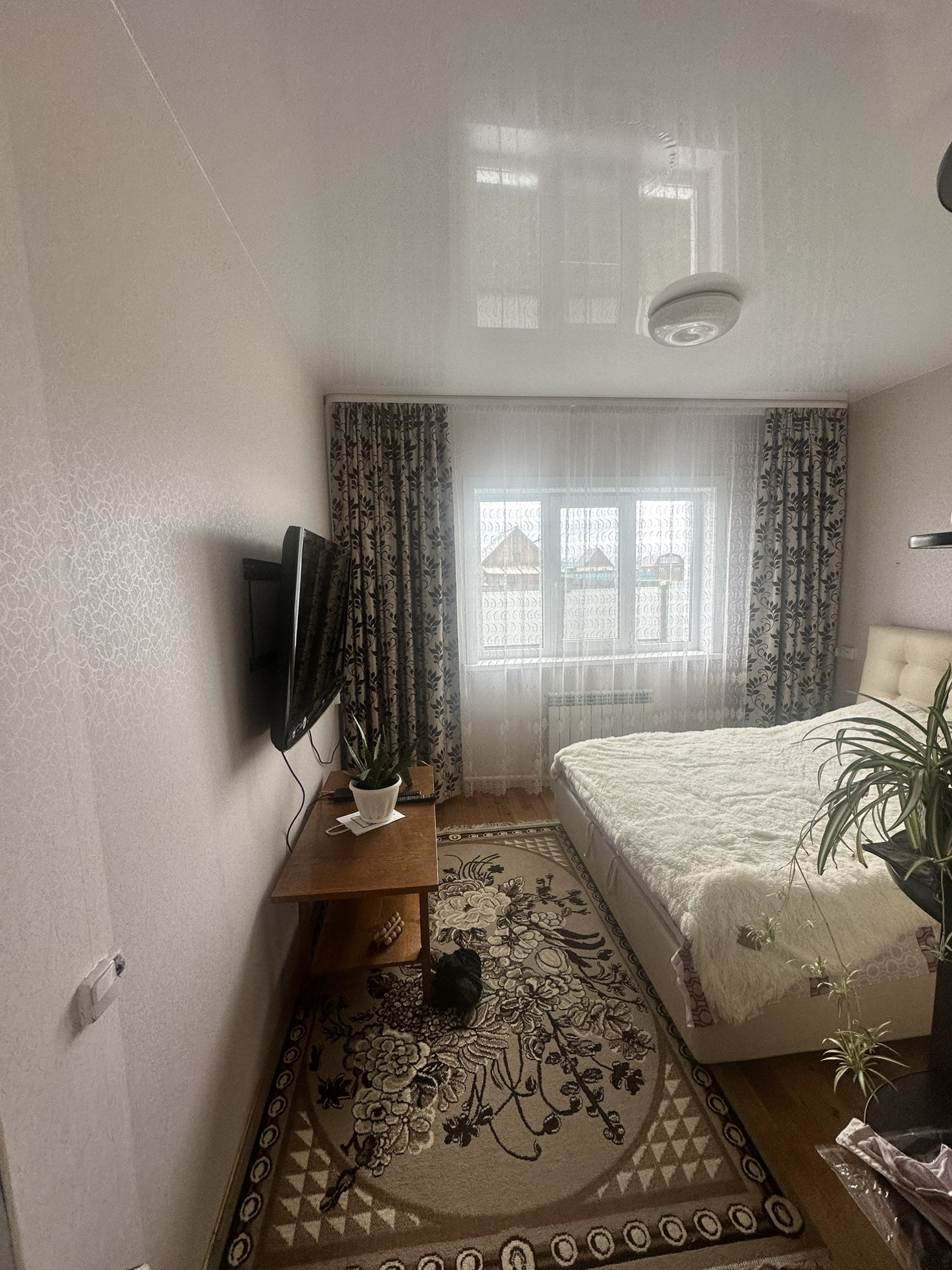 В четырехкомнатном доме хороший ремонт, натяжные потолки.
