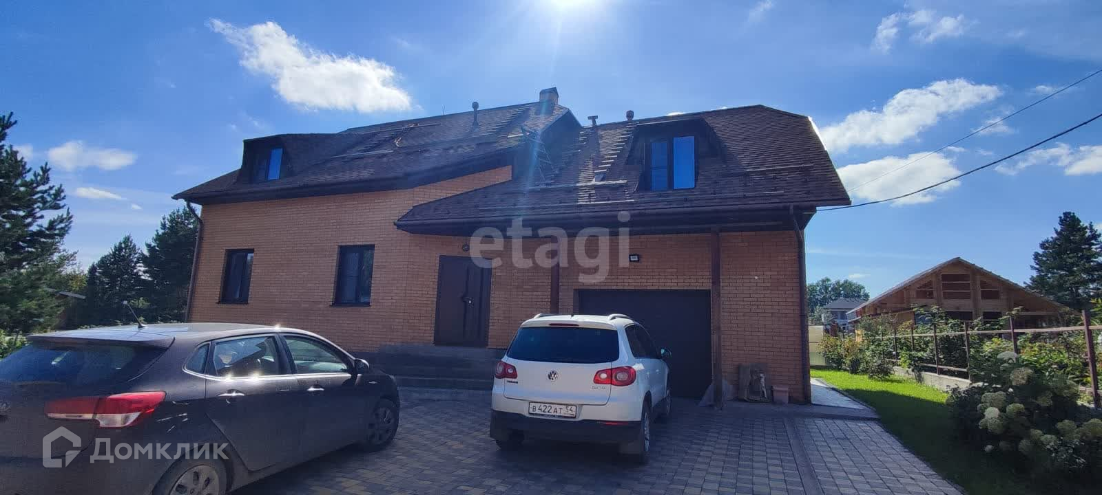 -парковка на 6 машин выложена тротуарной плиткой и гармонично сочетается с фасадом дома;