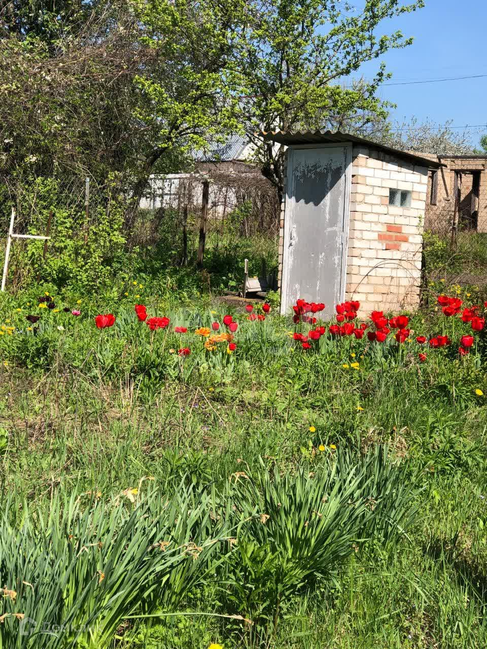 Участок обработан. Высажен новый фруктовый сад. Красивый палисадник с множеством цветов. Кирпичный туалет на участке. Есть металлический контейнер для хранения.