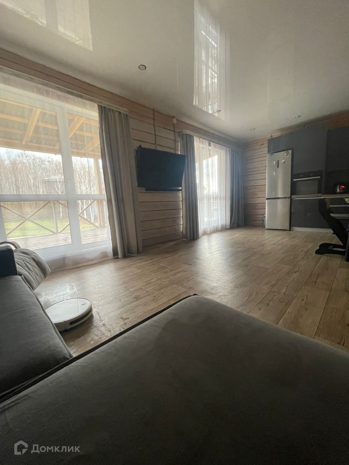 - Кухня-гостиная с панорамными окнами на лес и выходом на террасу