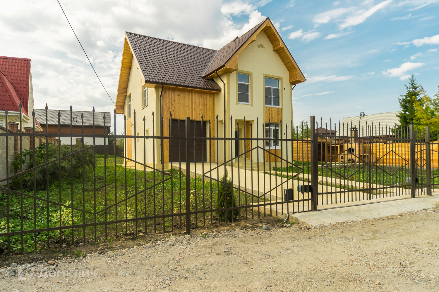 На крыши метало-черепица в доме получистовая отделка; финишная стяжка, выровнены стены, стеклохолст, разводка эл. (Гост), установлены розетки и выключатели (Schneider), натяжной потолок, подключение 30 кв.т.