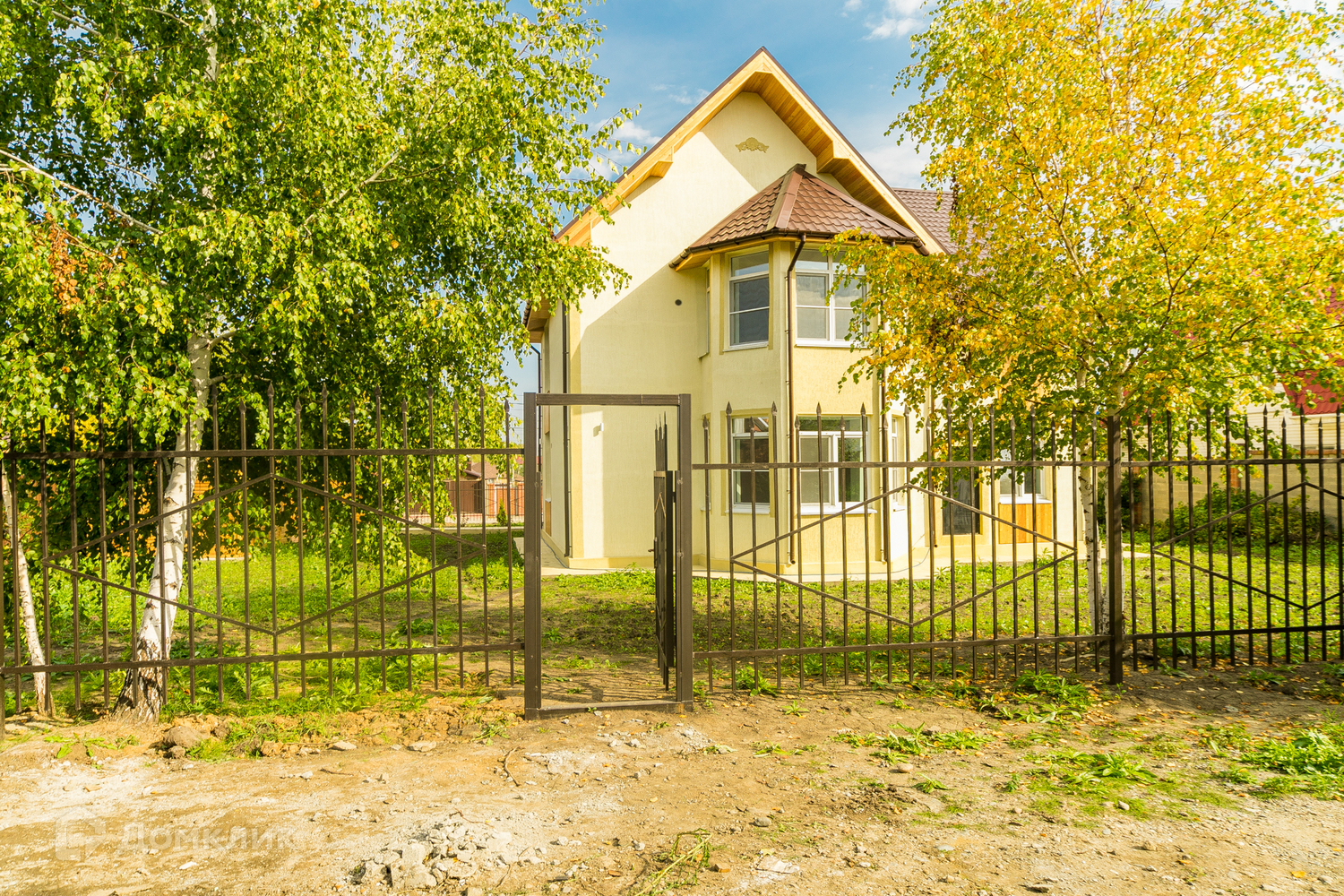 Участок 10 соток огорожен по периметру кованным заборам, высажены деревья, ворота электрические.