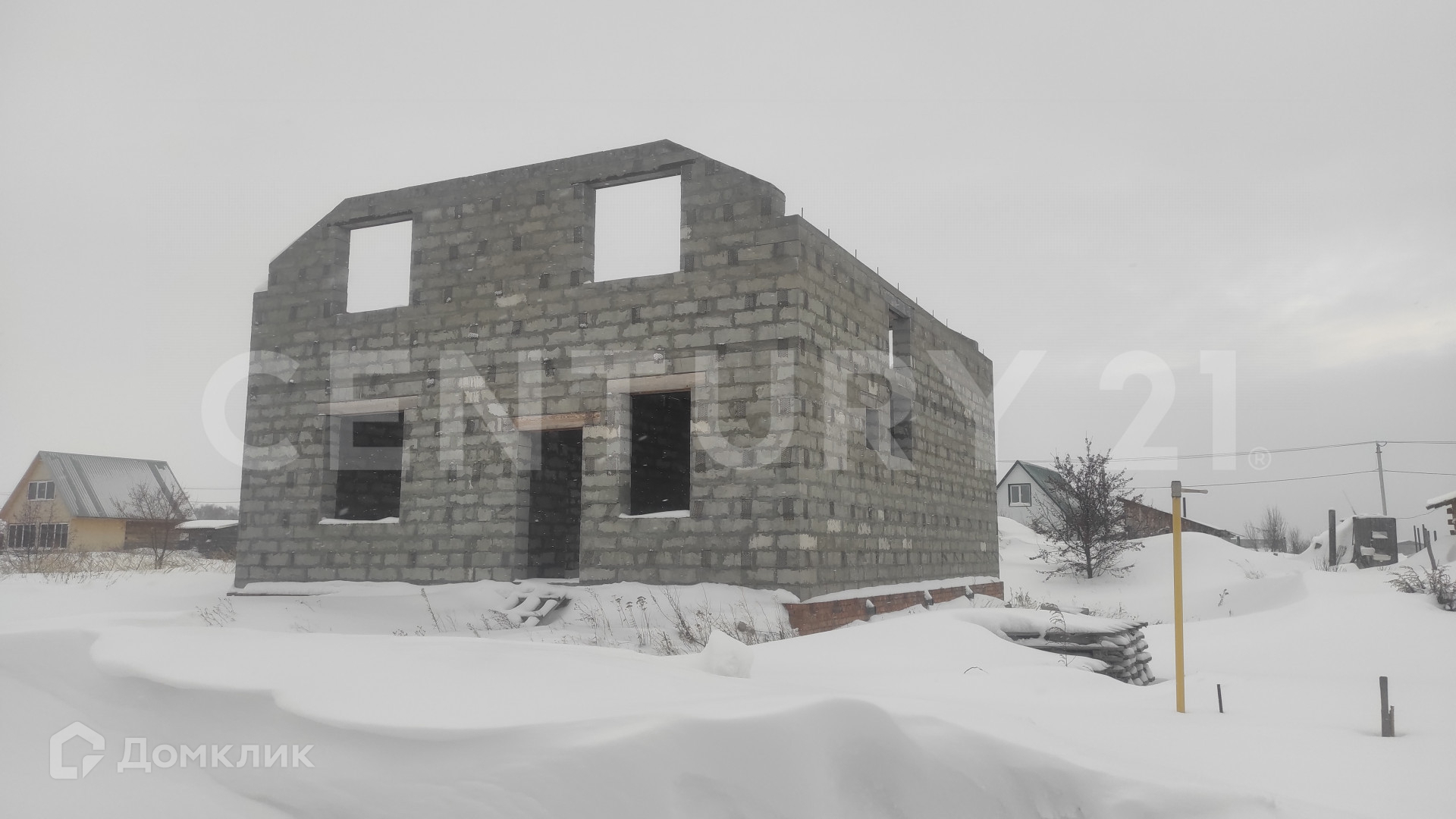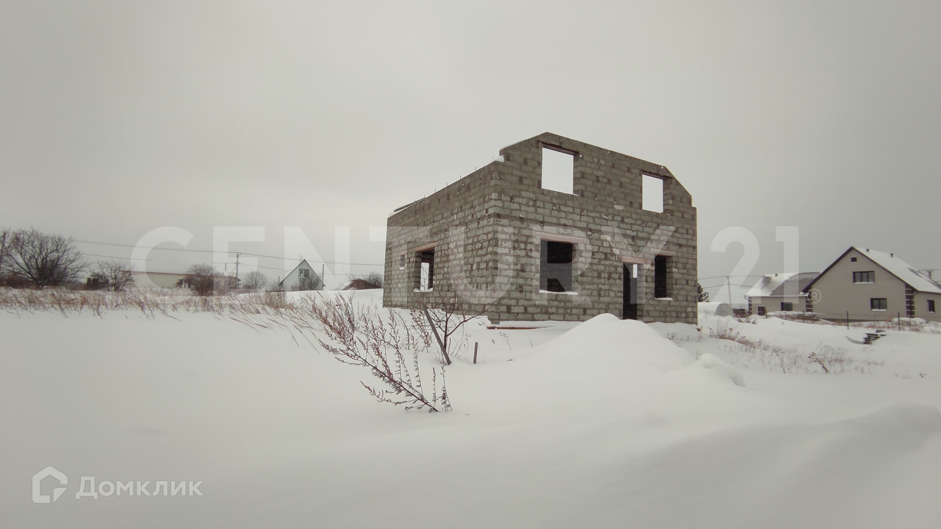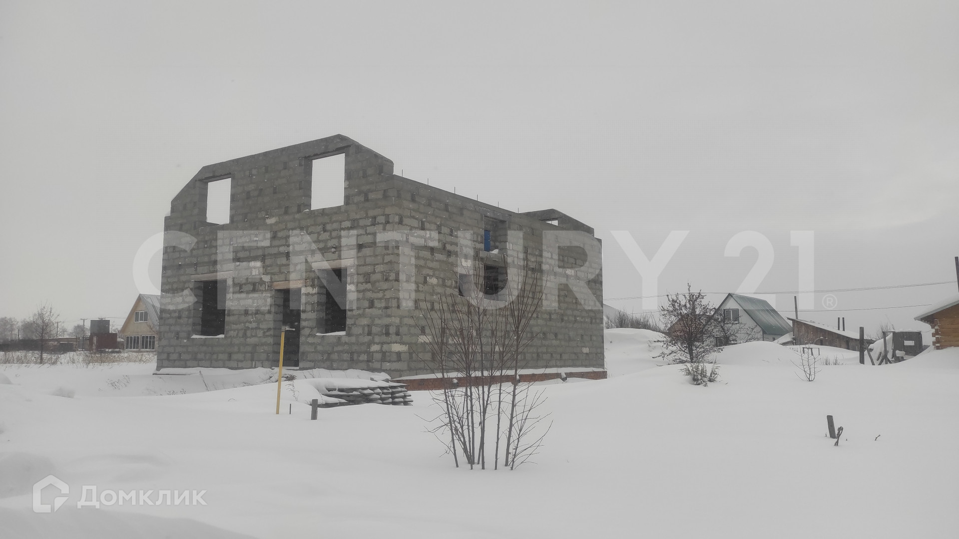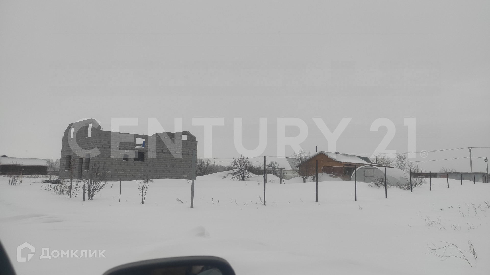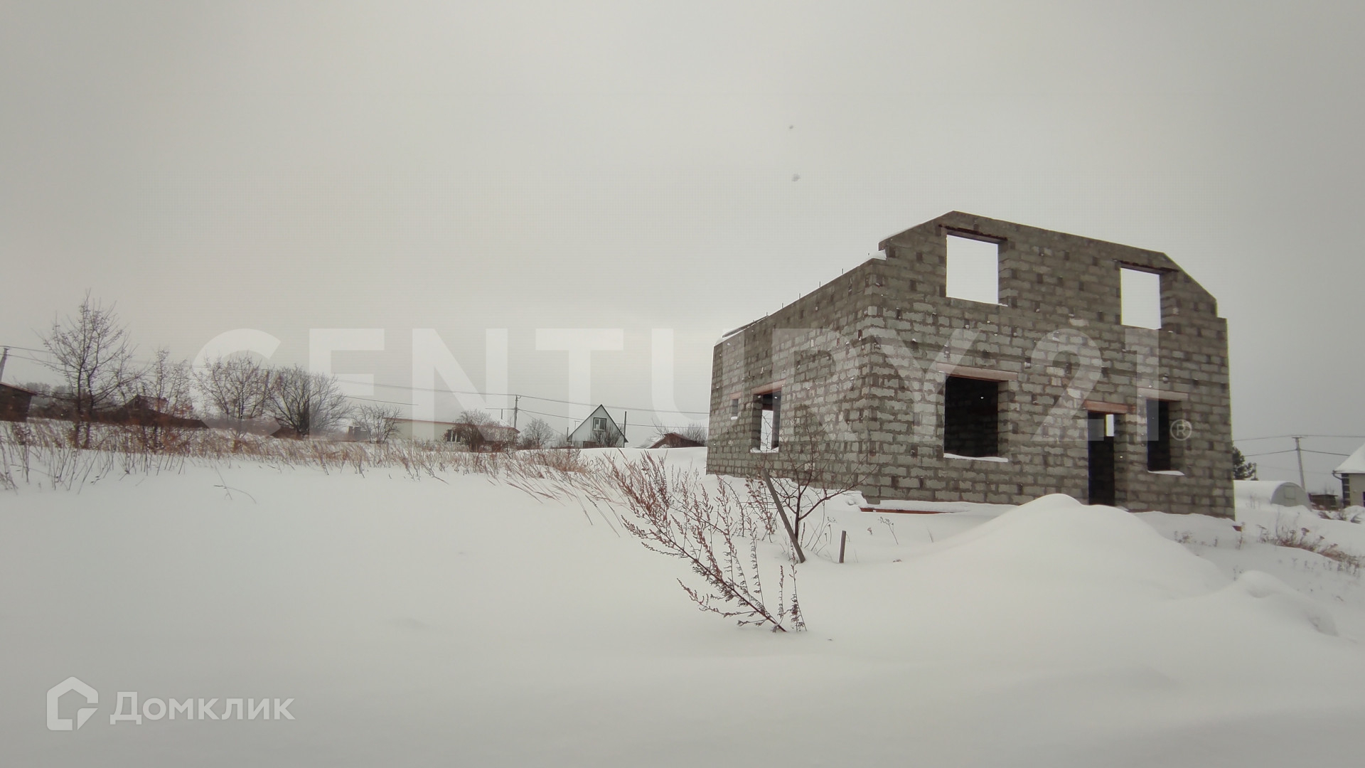 Участок с недостроенным домом мансардного типа.