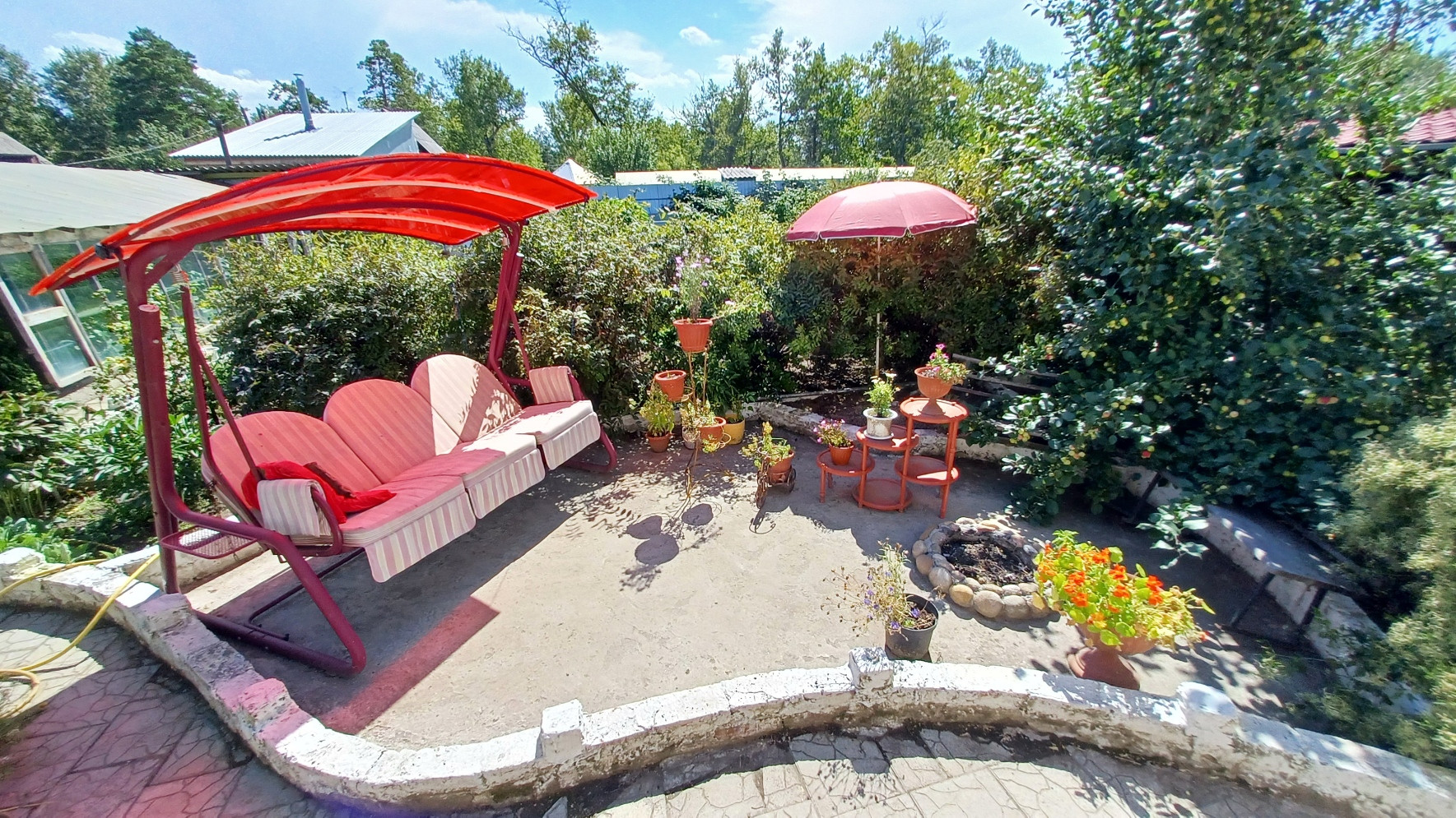 Участок ухожен, ровной формы, весной всегда сухо. Мощенные плиткой дорожки и площадка для машин.
