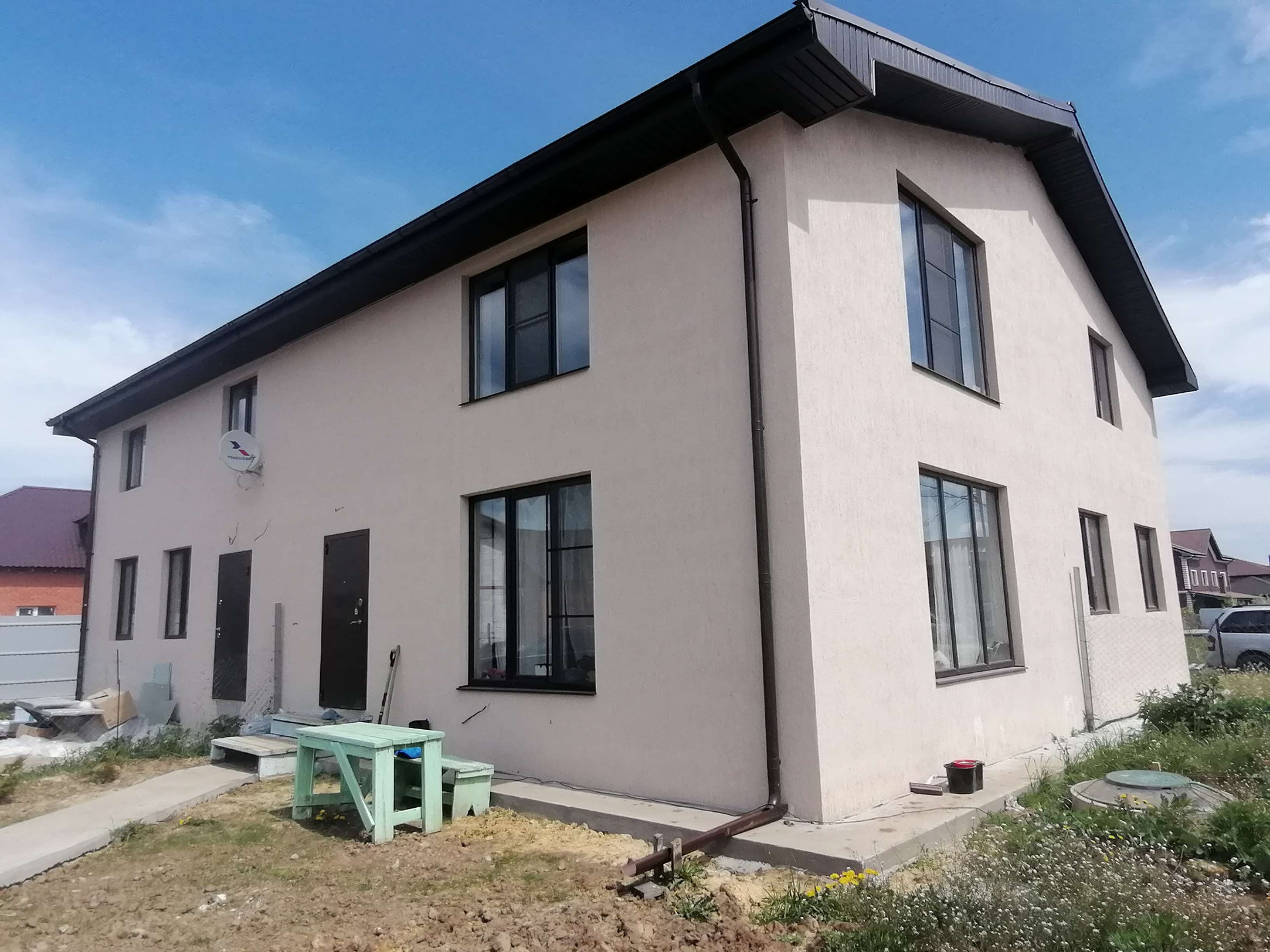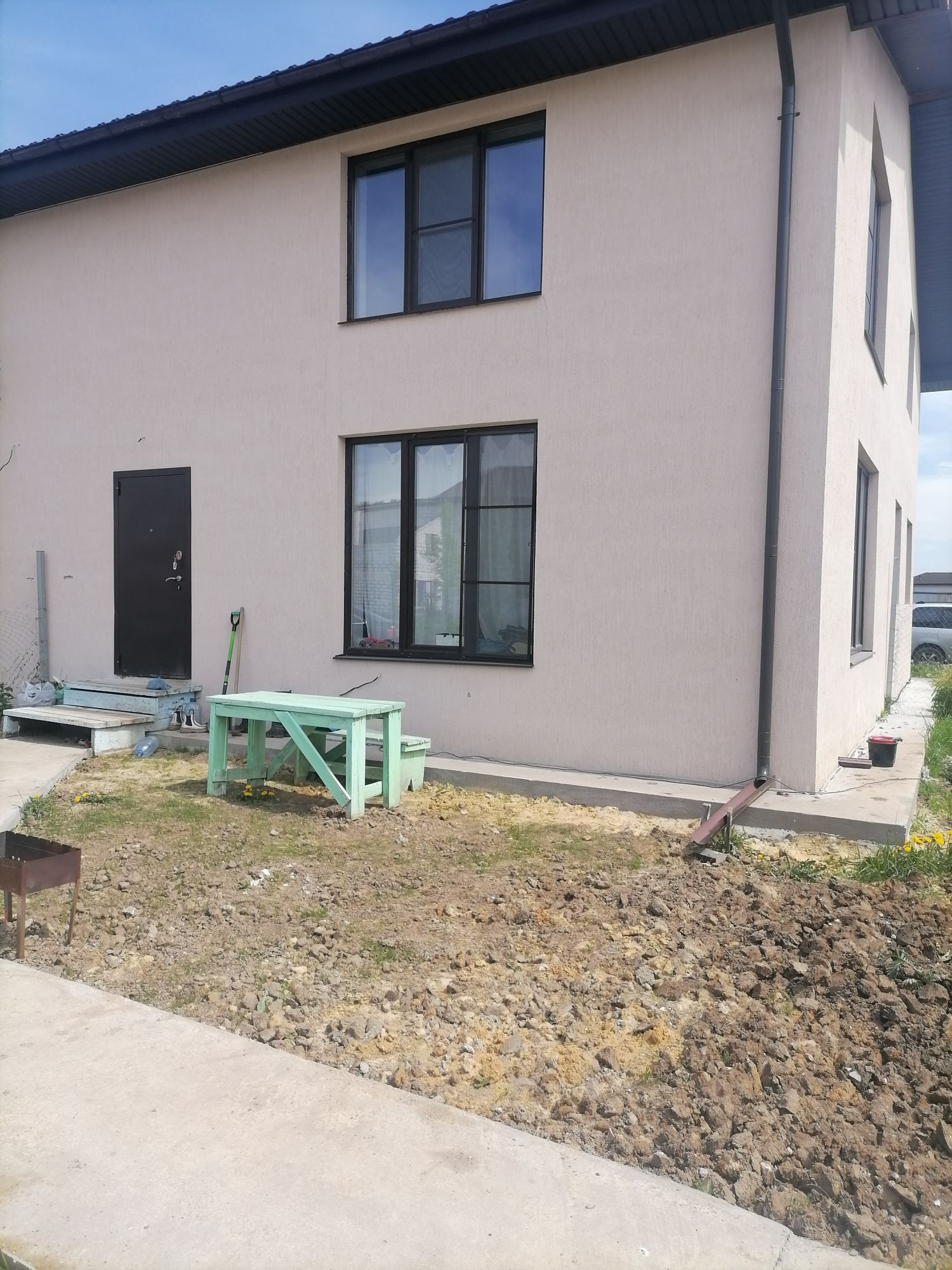 Полностью проведены все коммуникации: свет 15 кВт, оплачен газ, автономные скважина и септик с гарантией обслуживания. Есть забор из рабицы, калитка, по периметру посажены туи. Фасад и фундамент утеплен и покрашен, дом утеплен внутри и выполнена вся черновая отделка на обоих этажах. На 1 этаже свободная планировка и санузел (уже сделан) , на втором этаже 2 спальни, санузел и чилаут зона, крыша утеплена.