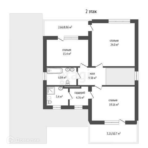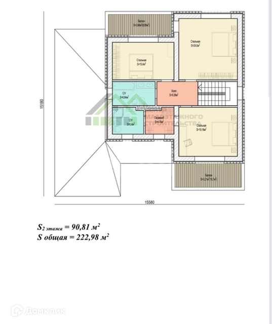 На втором этаже расположены: холл, два санузла, три просторные спальни с выходом на балконы, гардероб.