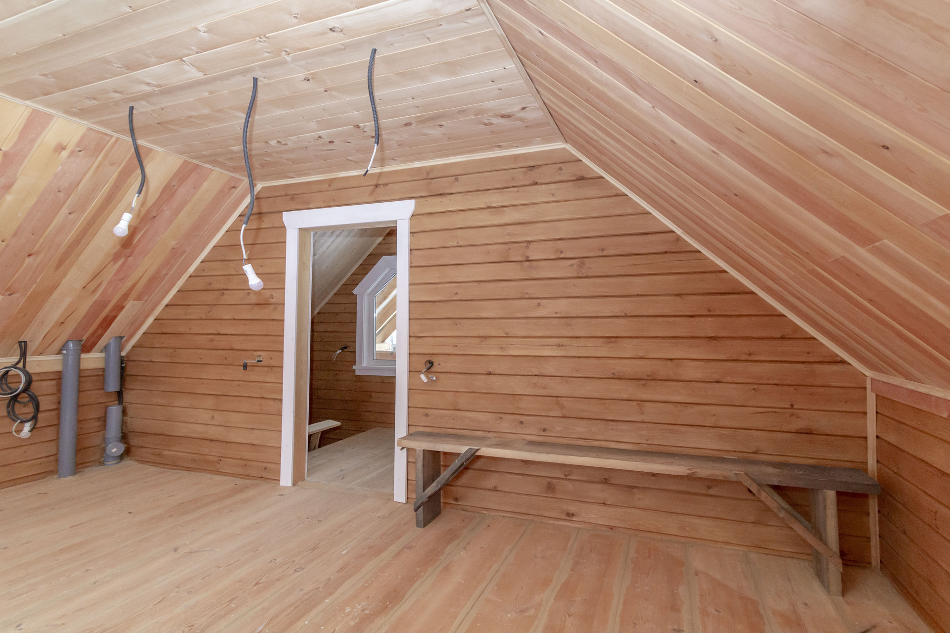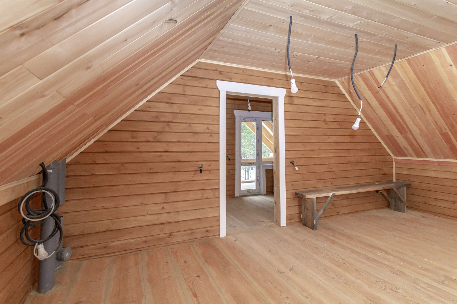 Внутри дома отделка деревом. Окна европейского качества, фурнитурой «антивор». Планировка свободная. На первом этаже: прихожая с теплым полом, кухня-гостиная, санузел. Высота потолка 3 метра. На втором этаже просторная комната( высота потолка более 3 метро) с выходом на огромную и широкую террасу.