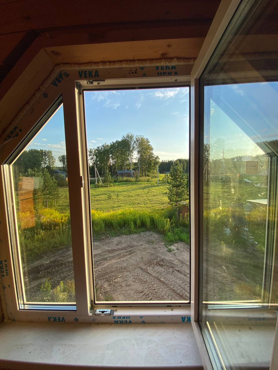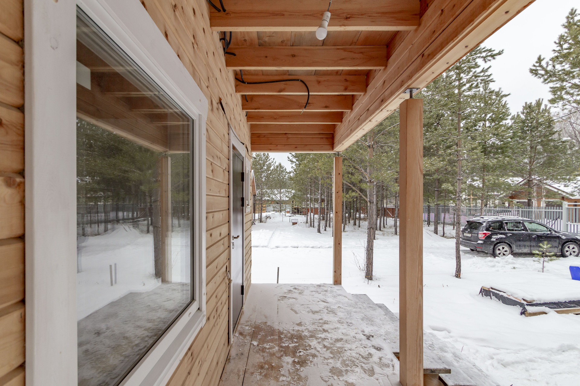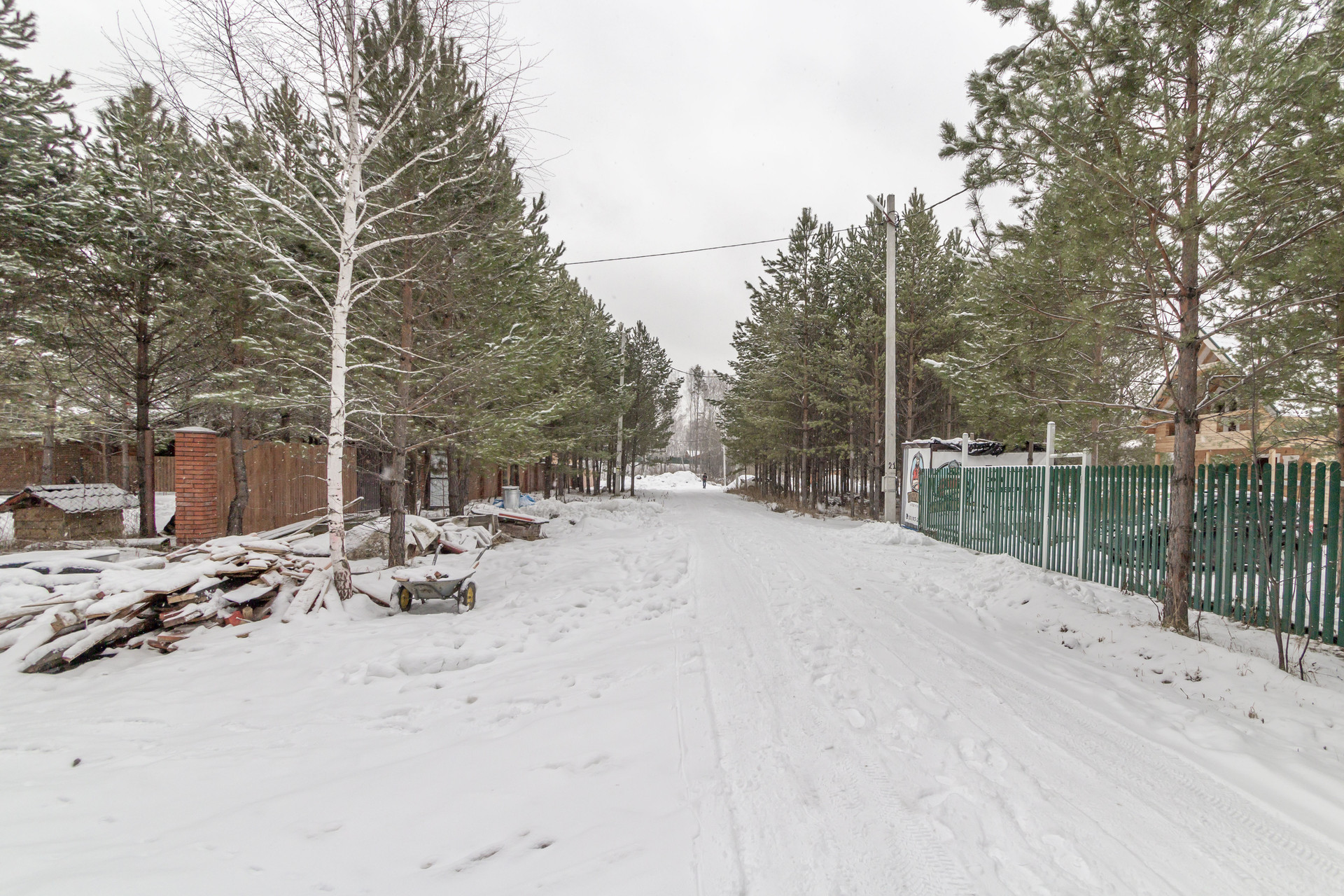 На участке рядом с домом сосны, близко сосновы лес, озеро через участок. ДНТ охраняется. Круглогодичное проживание.