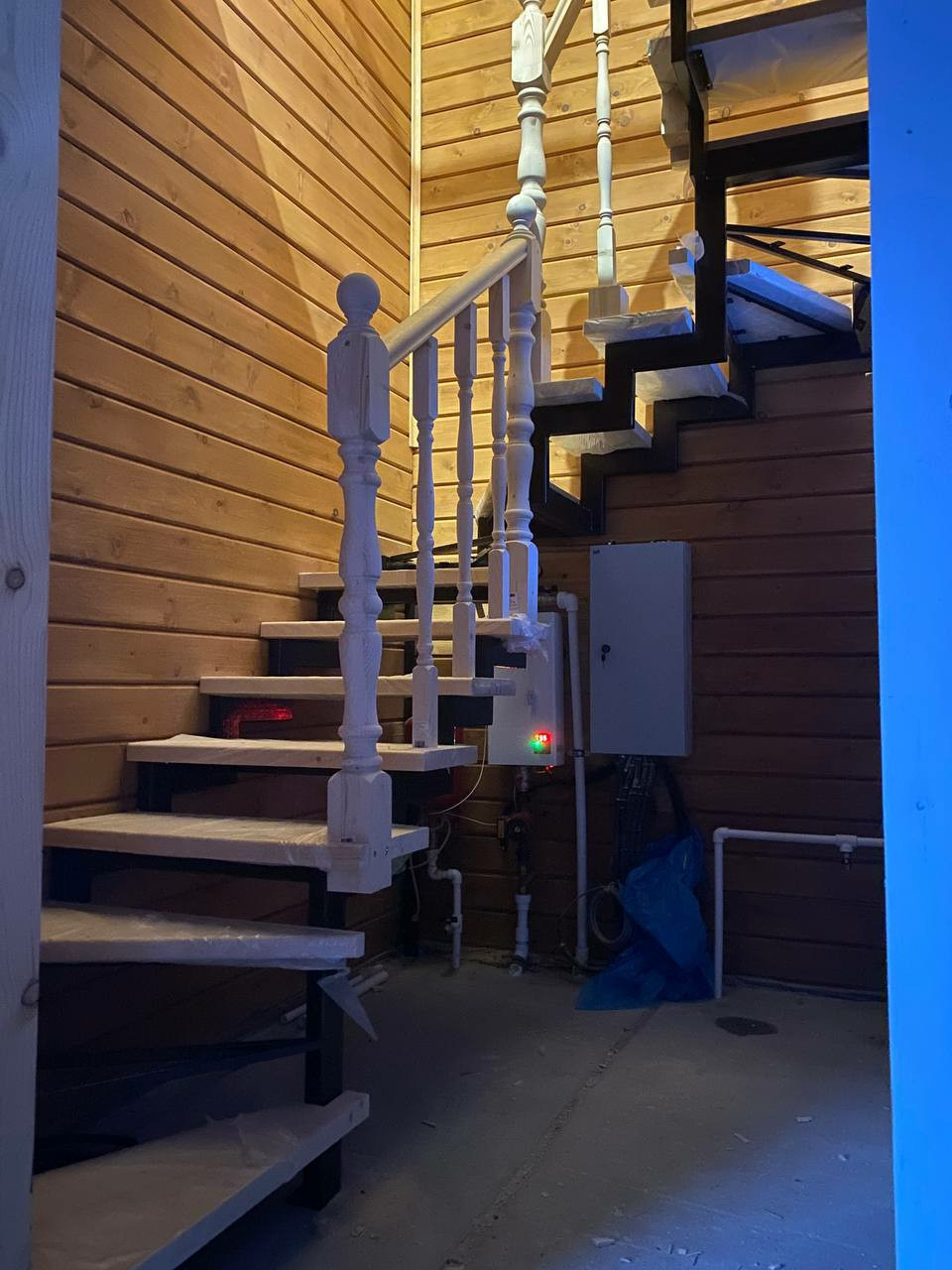 Готова лестница на второй этаж(металлическая конструкция и ступени из натурального дерева.